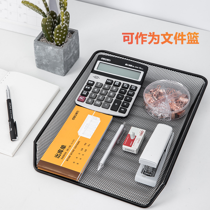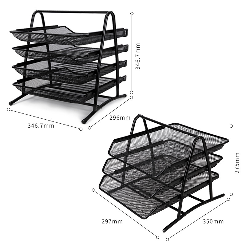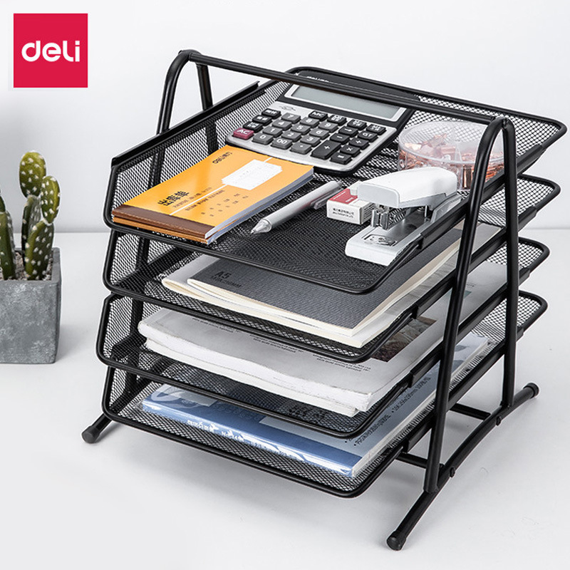 得力文件架网状四层文件座资料篮收纳框架三层文件整理架金属框