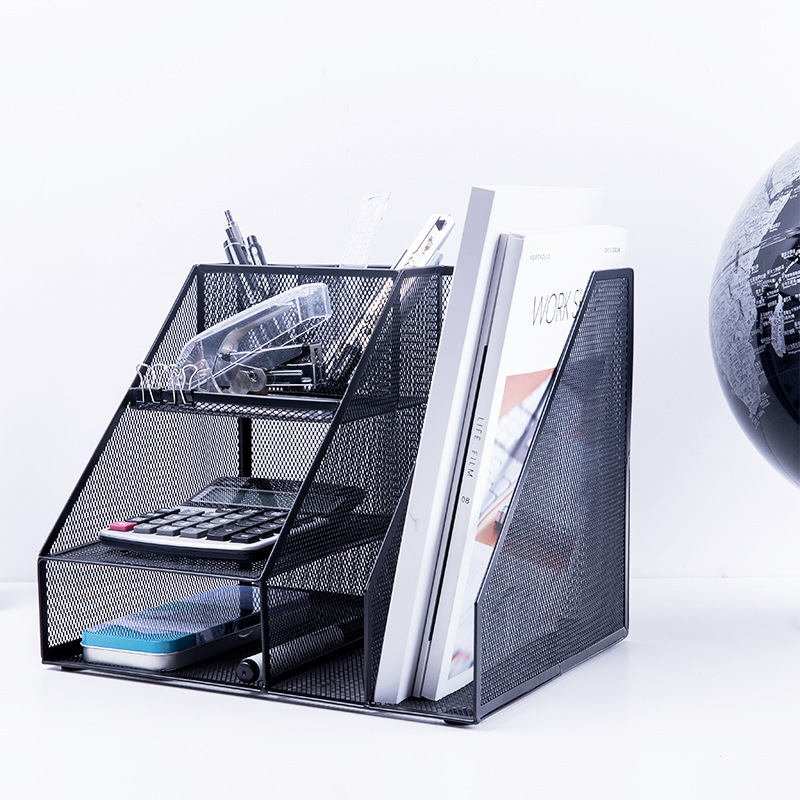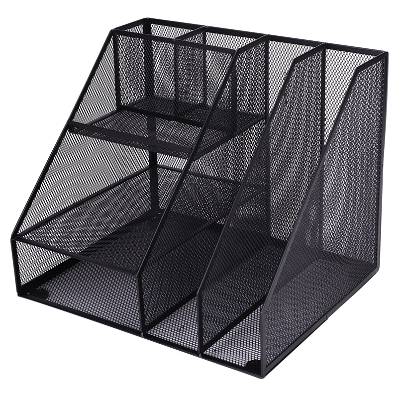 Deli 79075 multifunctional file frame, iron multi-layer file rack, storage box, combined desktop storage rack