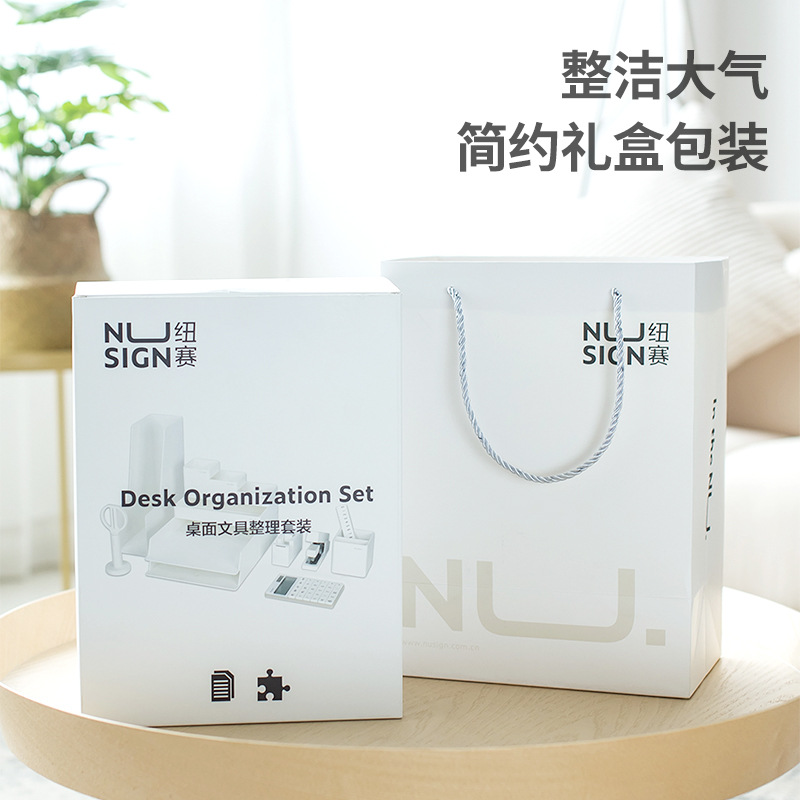 得力纽赛NS003桌面整理13件套简约风办公桌面收纳套装入职礼盒装