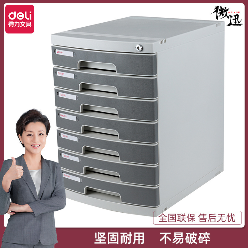 得力7层带锁文件柜8877桌面资料文件整理收纳柜塑料抽屉柜办公用