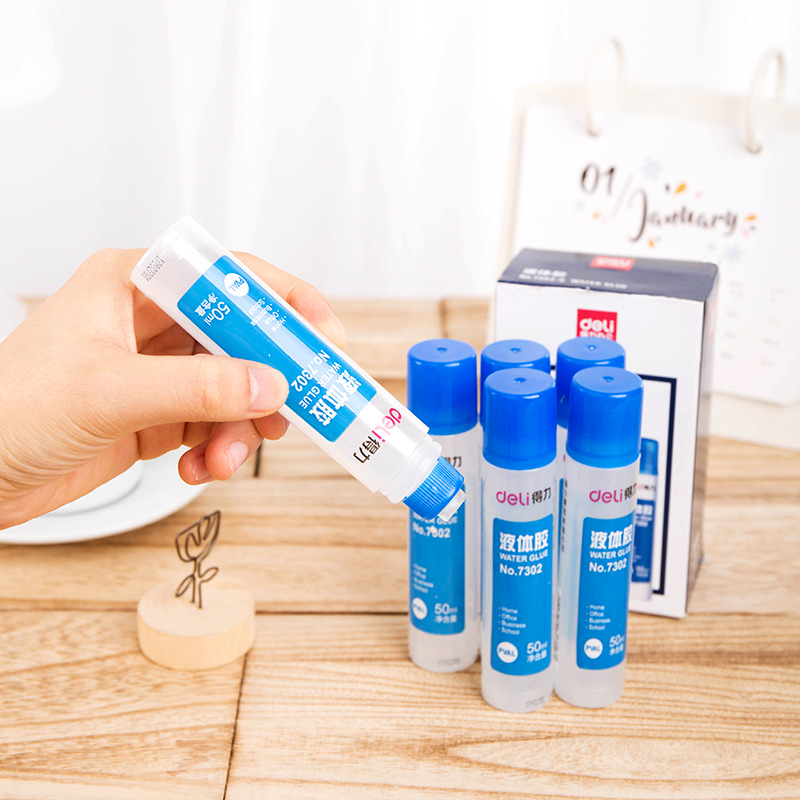 Deli 7302 Liquid Adhesive Office 50ml Medium Liquid Adhesive Student Portable Transparent Air Dry Adhesive