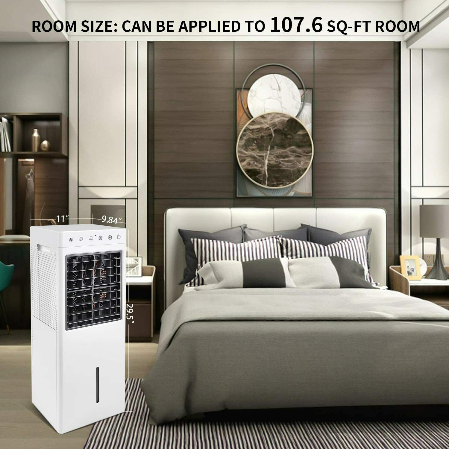 | 包装清单 | 简约豪华 30 英寸蒸发式空气冷却器风扇,带加湿、驱虫和负离子功能,2 加仑水箱,3 速设置,遥控器,白色 |