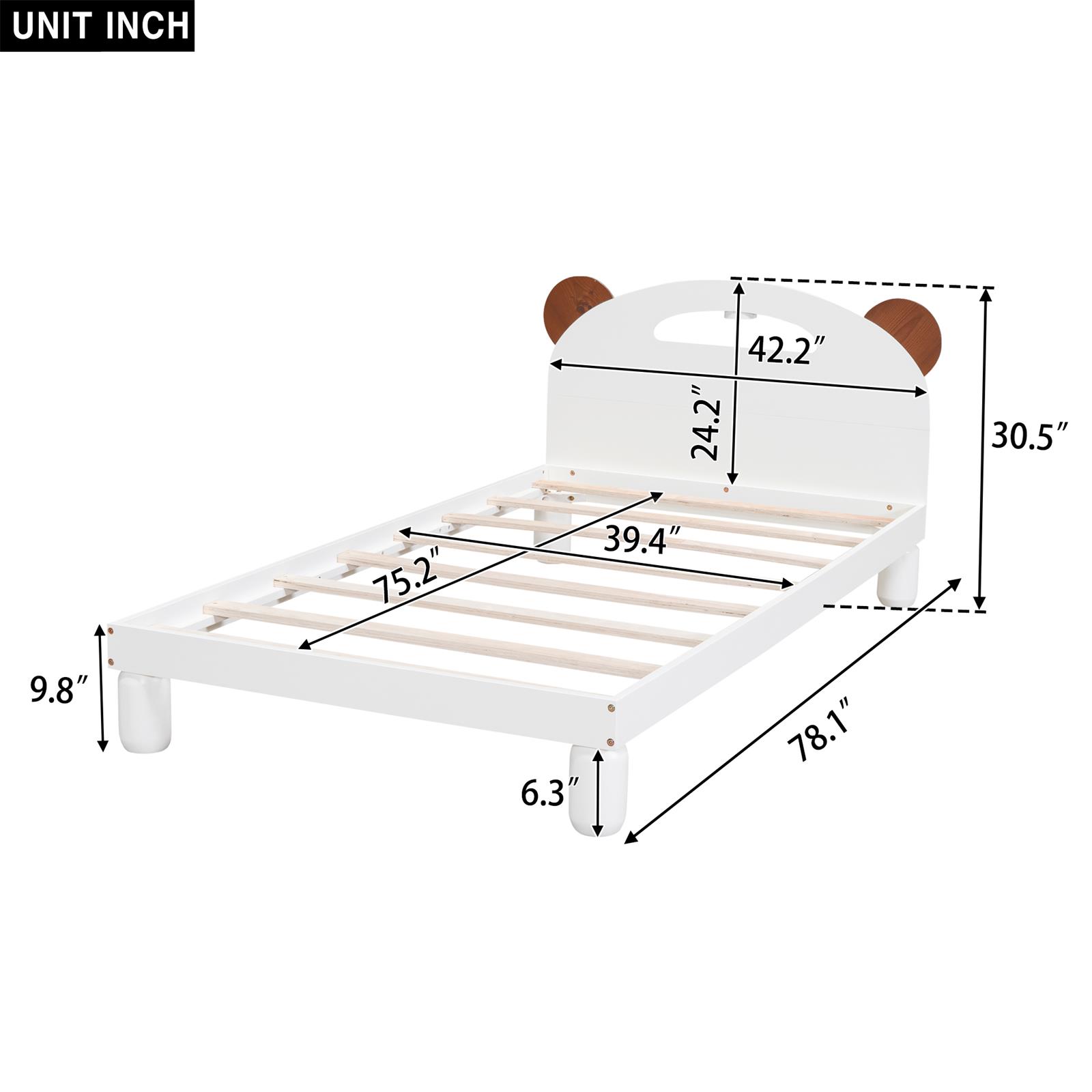 | 包装清单 | 双床平台床,带熊耳形床头板和 LED,乳白色 |