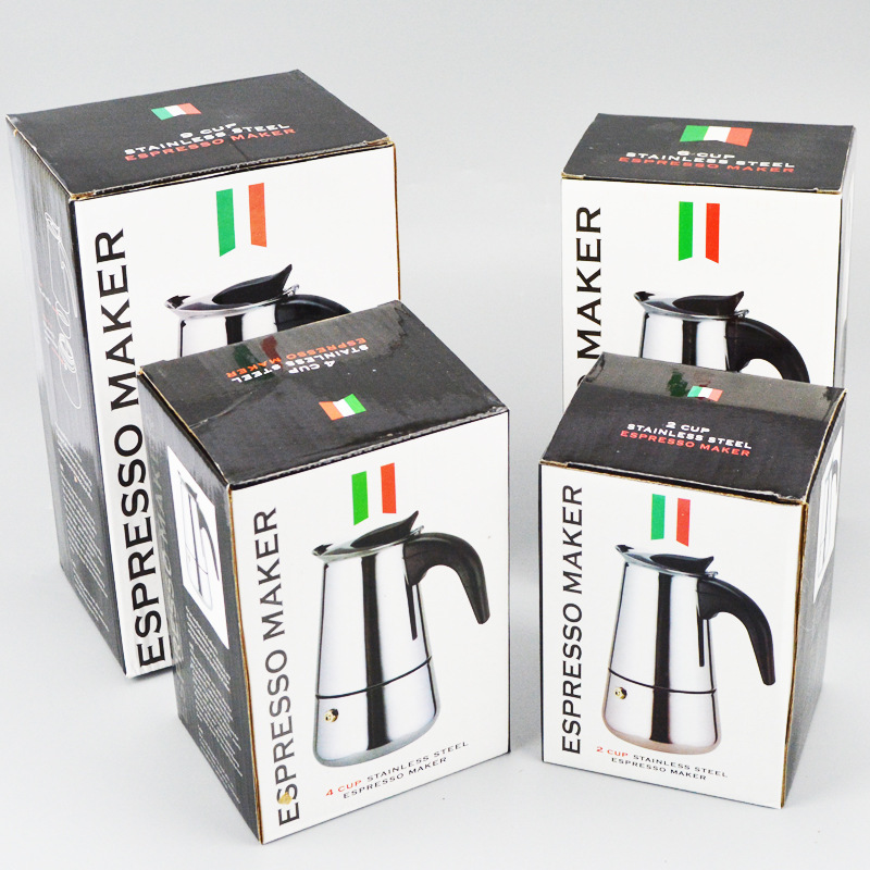 厂家优质摩卡壶不锈钢便携式电热咖啡壶现货供应:不锈钢本色/直筒100ml/2杯 36个/件| 包装清单 | 厂家优质摩卡壶不锈钢便携式电热咖啡壶现货供应:不锈钢本色/直筒100ml/2杯 36个/件 |
