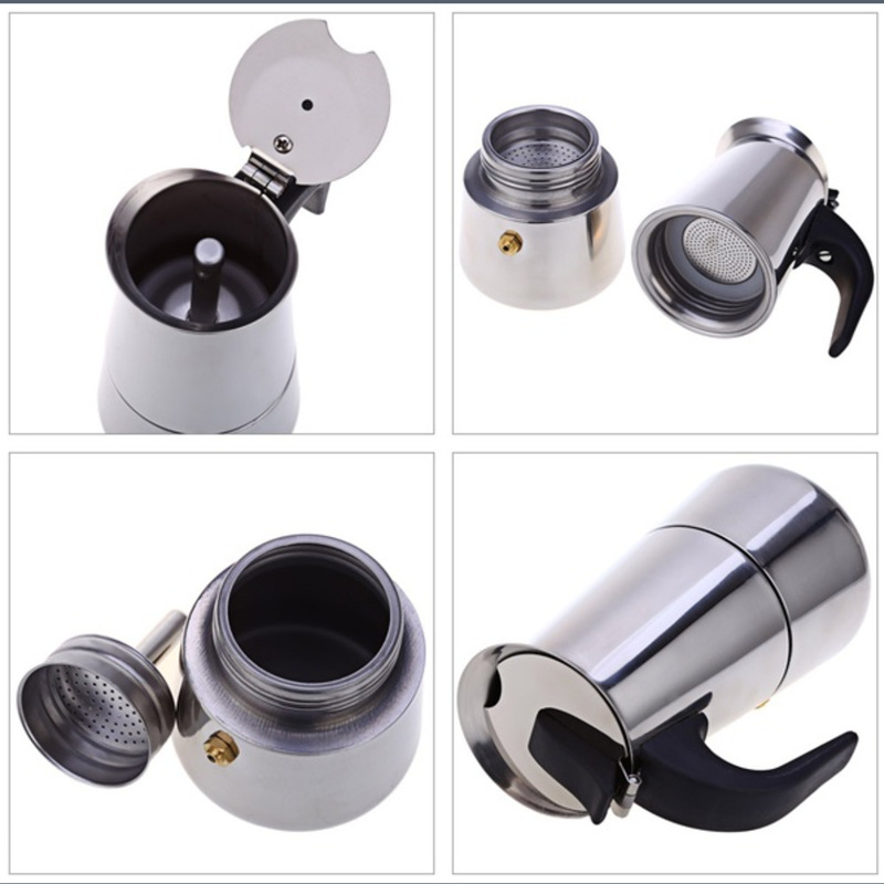 厂家优质摩卡壶不锈钢便携式电热咖啡壶现货供应:不锈钢本色/直筒100ml/2杯 36个/件