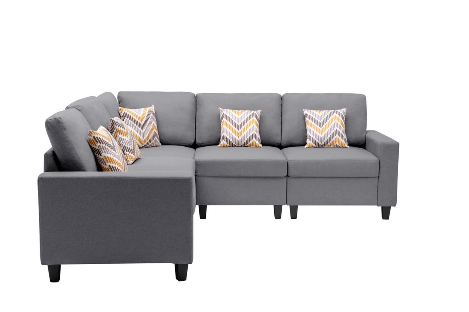 Nolan 灰色亚麻织物 5 件可翻转组合沙发,带枕头和可互换腿