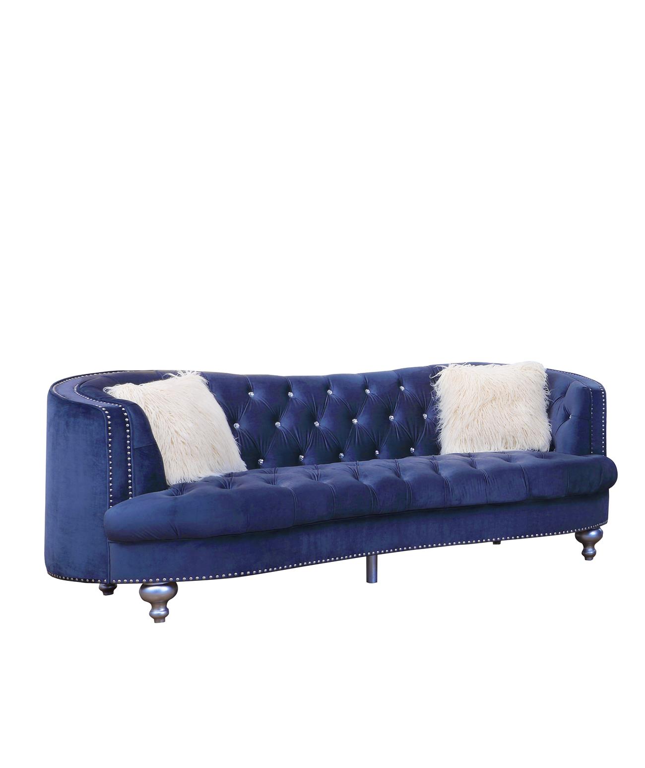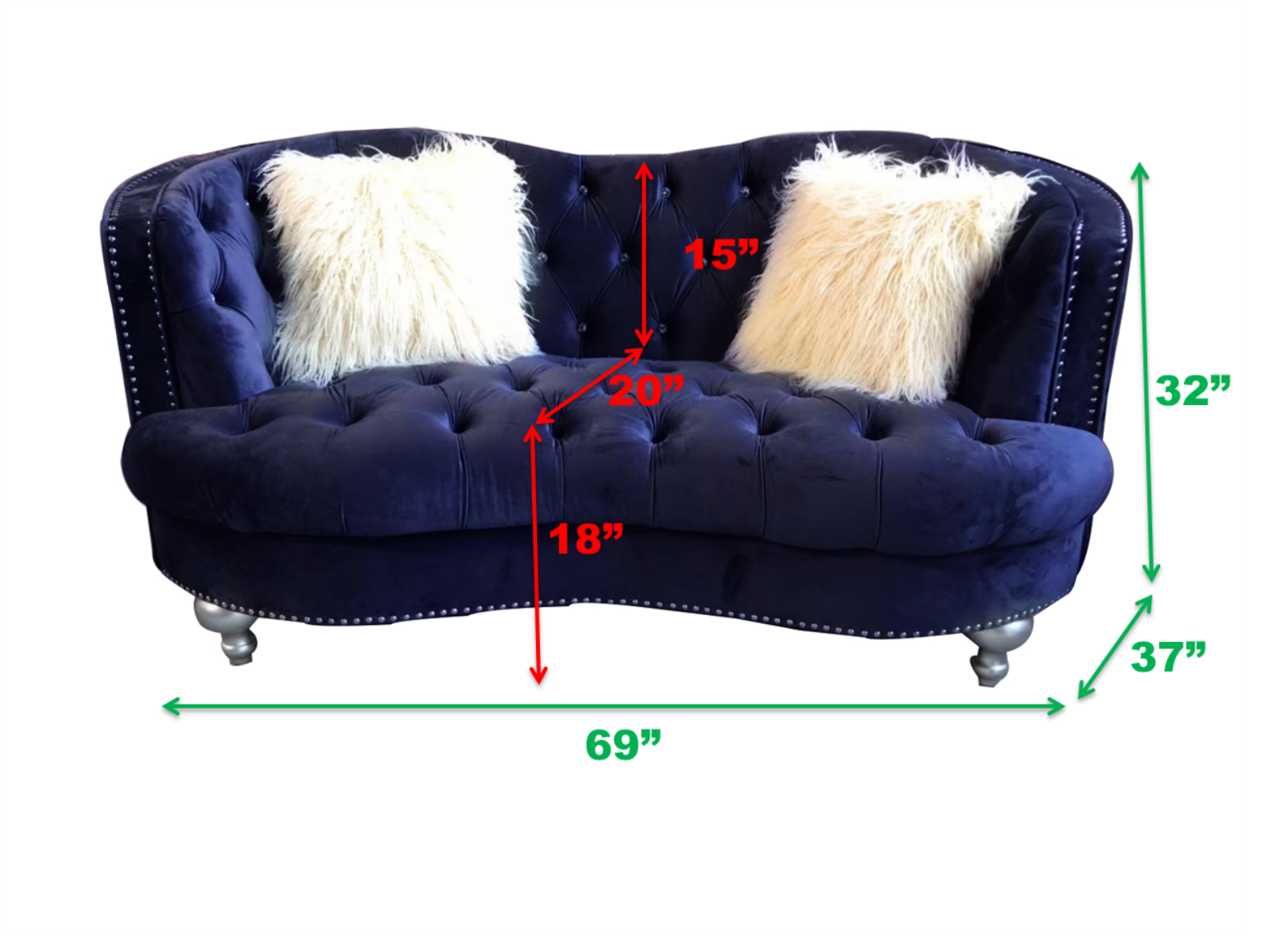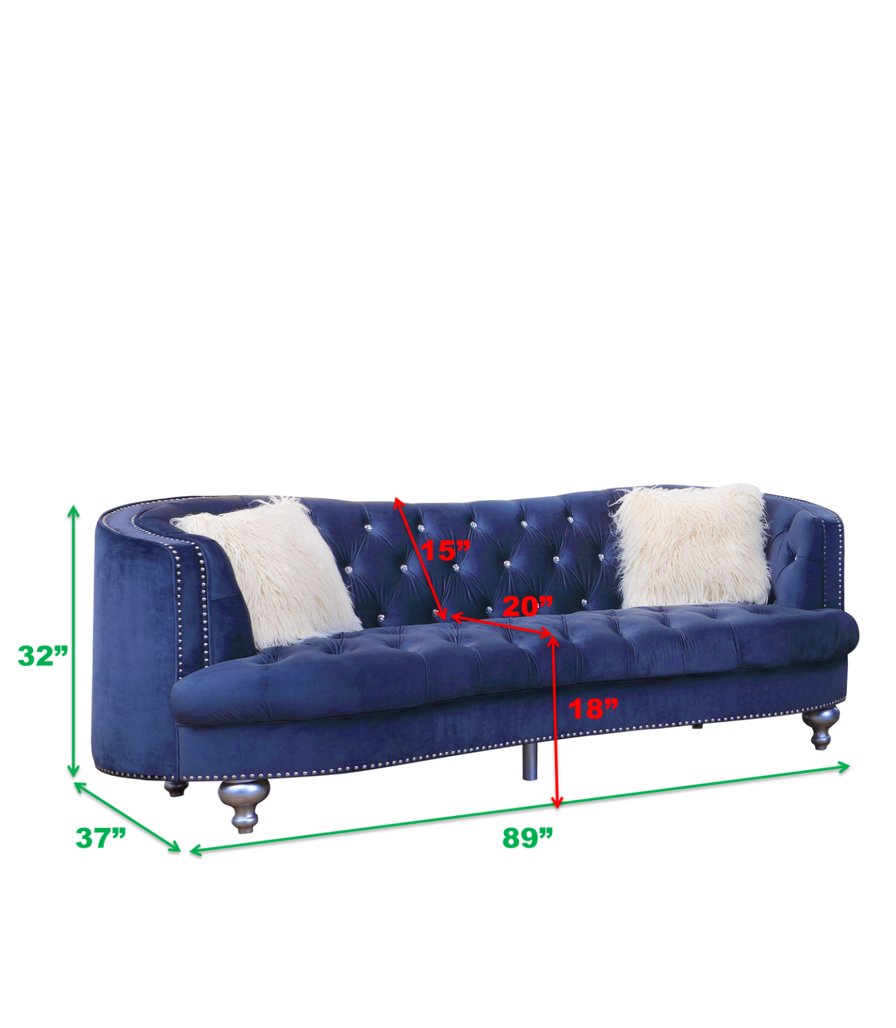 包装清单 Afreen 纽扣簇绒 2 件沙发套装,蓝色天鹅绒织物内饰