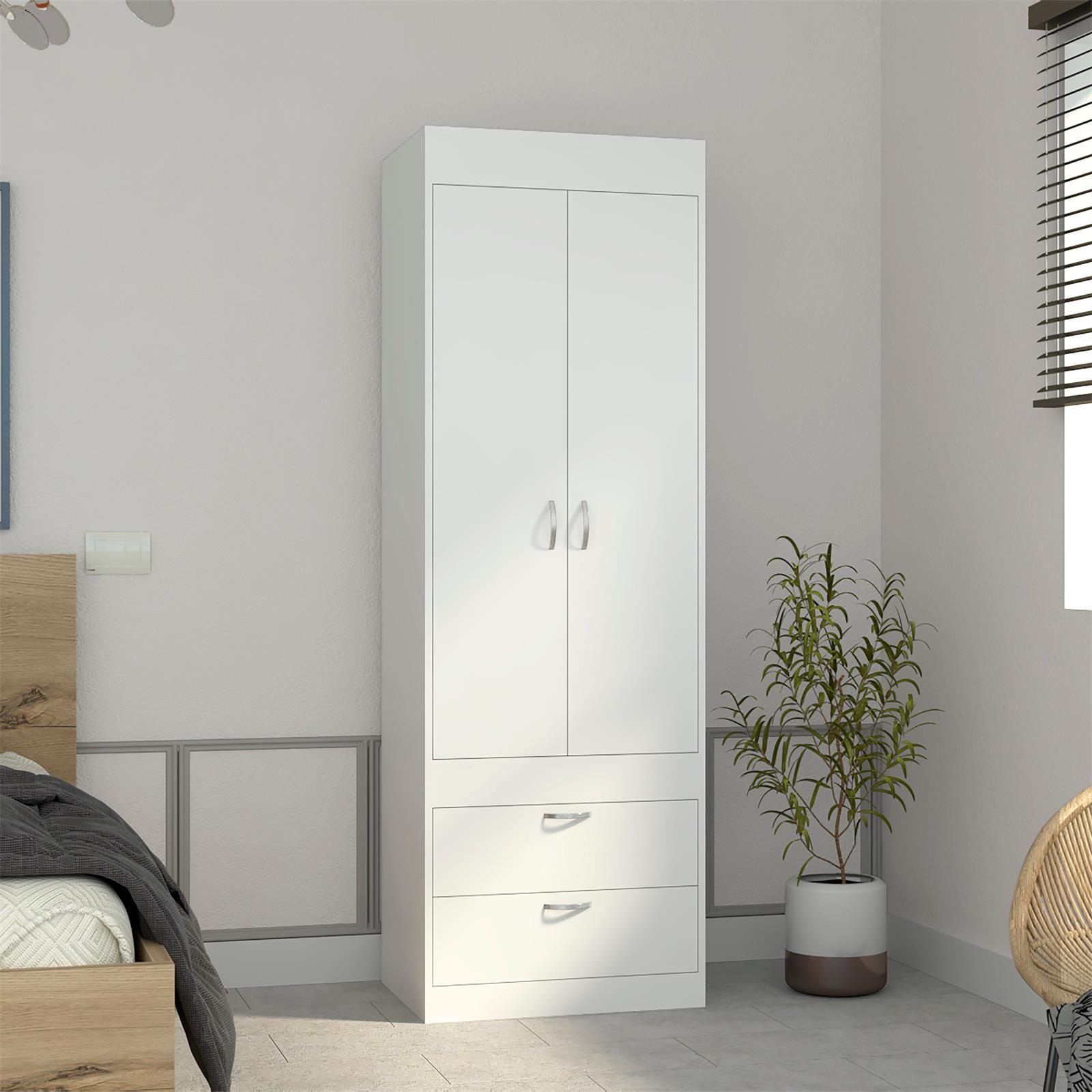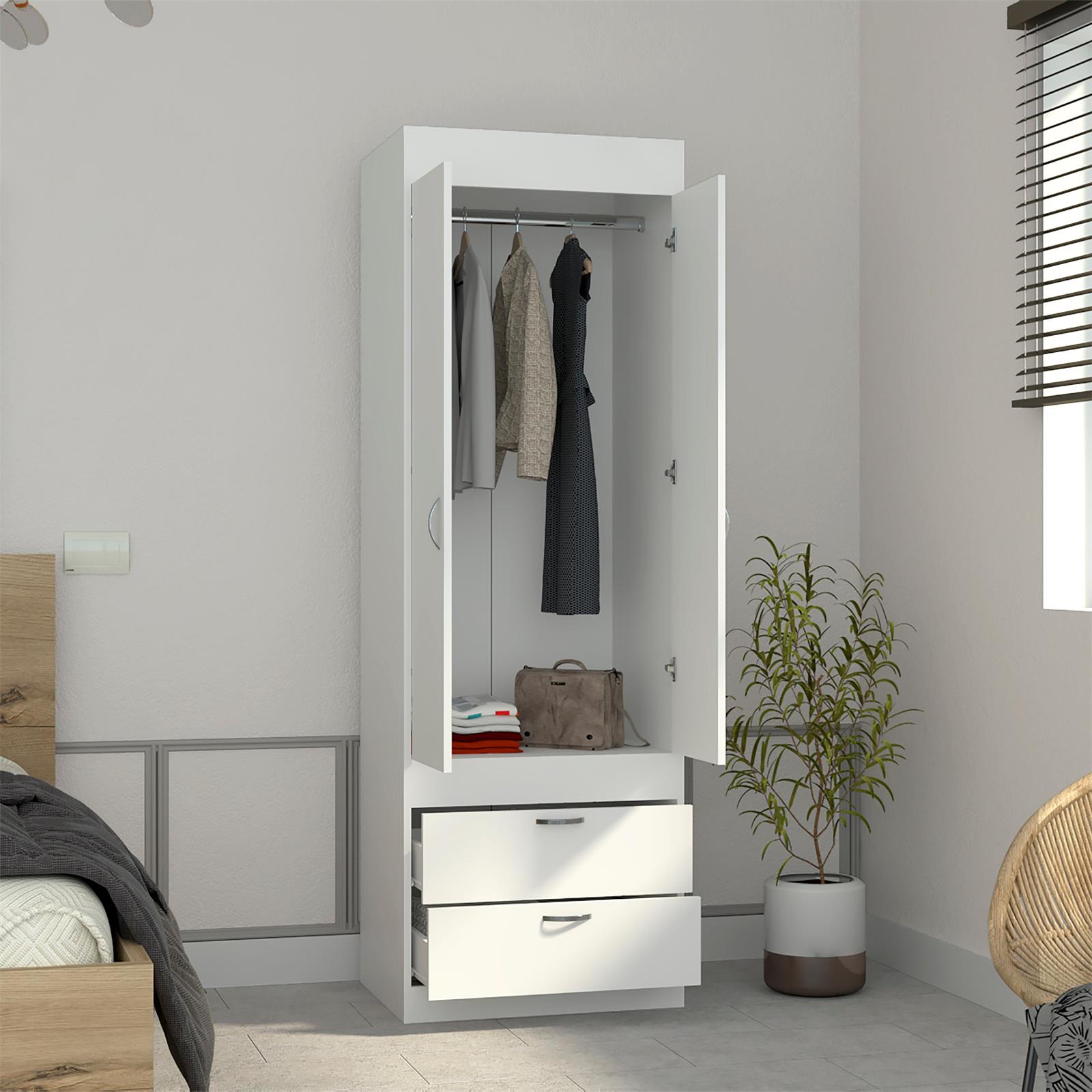 DEPOT E-SHOP 葡萄牙衣橱, 双门柜, 两个抽屉, 金属把手, 杆, 白色