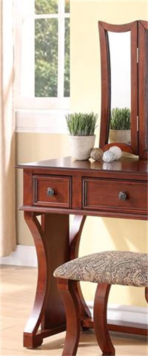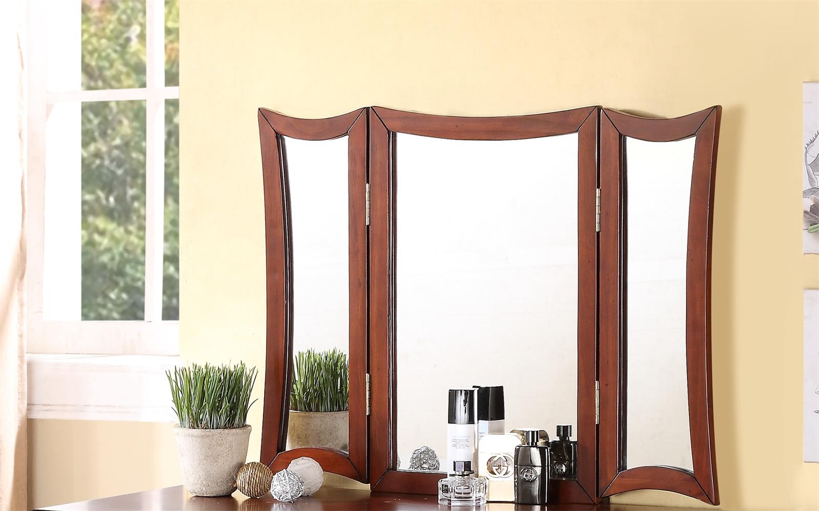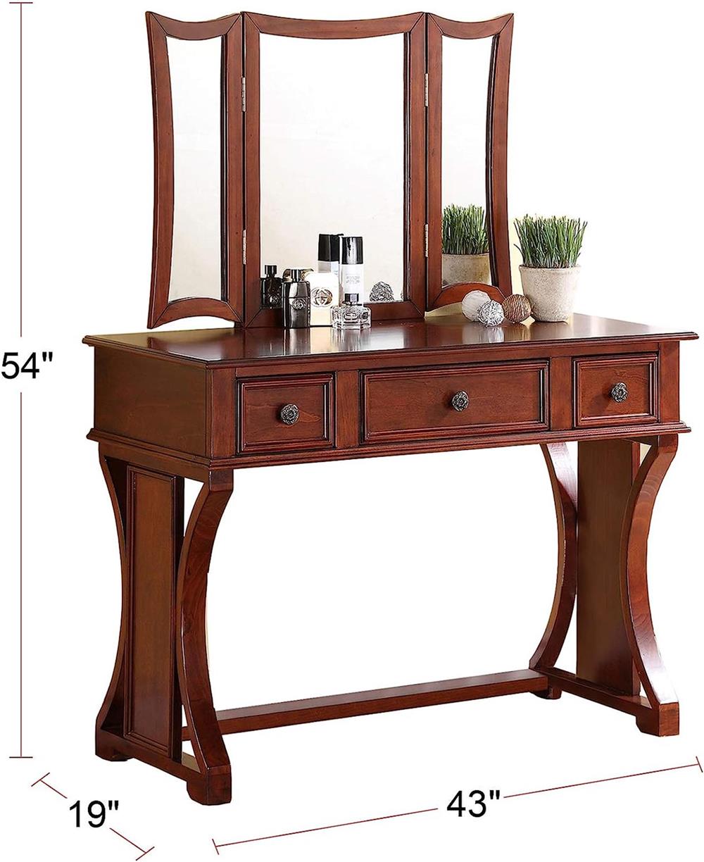 Packing list 独特的现代卧室梳妆台套装,带凳子可折叠镜子抽屉樱桃色中密度纤维板贴面 1 件梳妆台家具