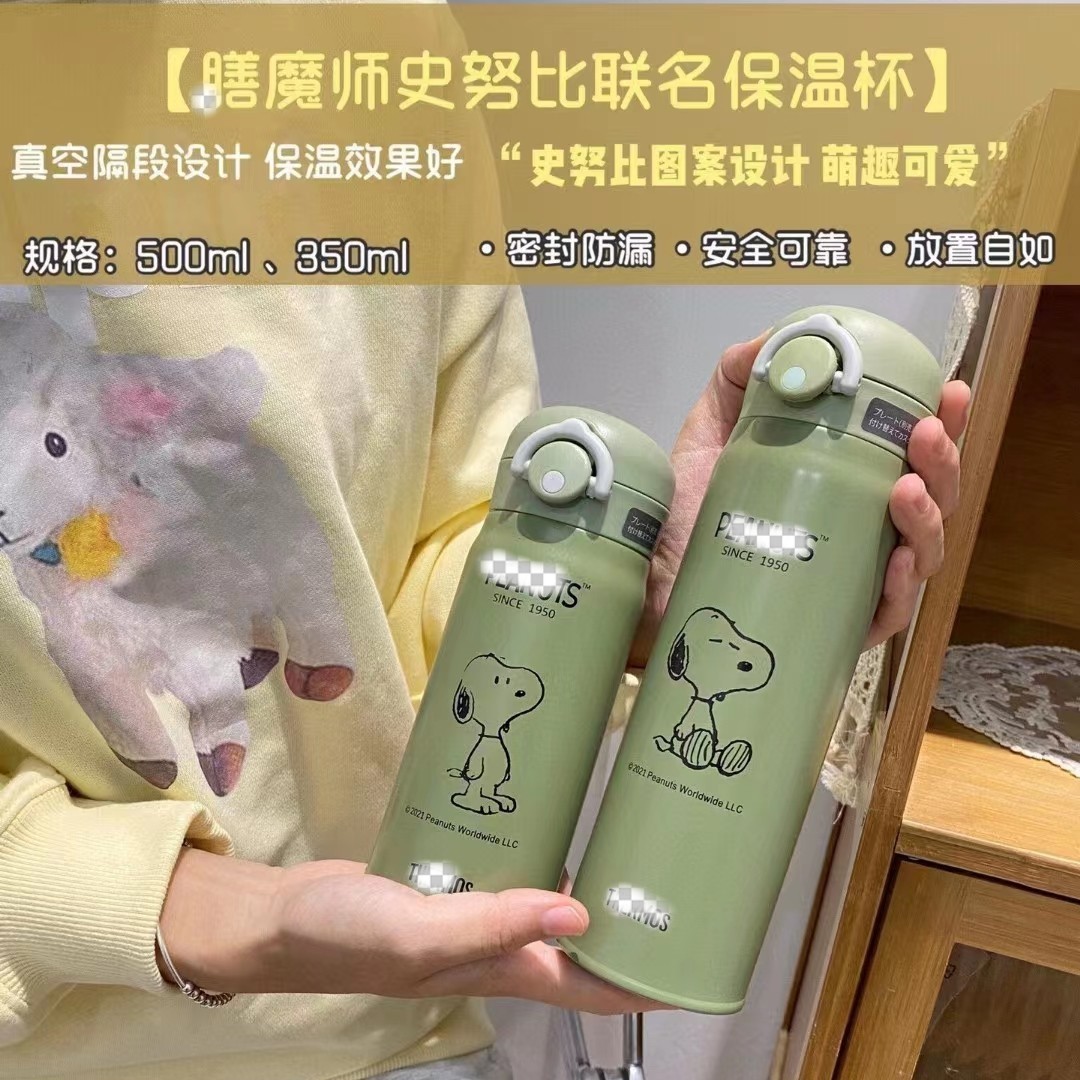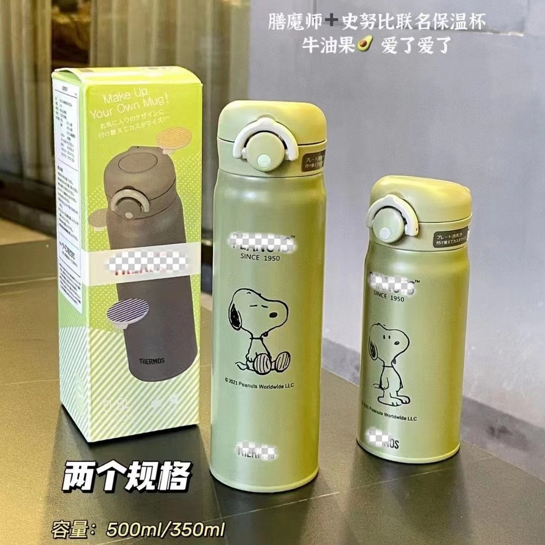 跨境史努比联名膳魔s保温杯 不锈钢爆款牛油果男女便携礼品网红杯:小号 350ml/350ml-500ml