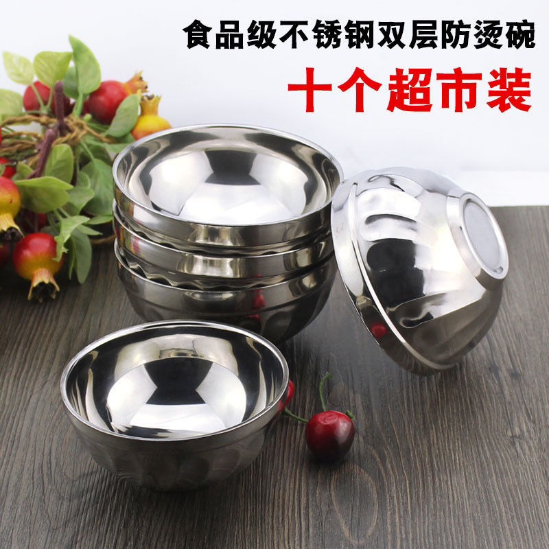 不锈钢碗批发防摔爆款超值食品双层百合泡面家用米饭汤碗跨境电商16cm百合碗/十个装(尺寸偏小0.5厘米)