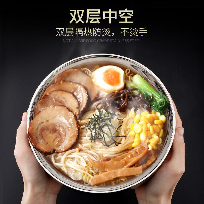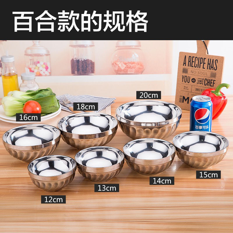 不锈钢碗批发防摔爆款超值食品双层百合泡面家用米饭汤碗跨境电商16cm百合碗/十个装(尺寸偏小0.5厘米) 补货中