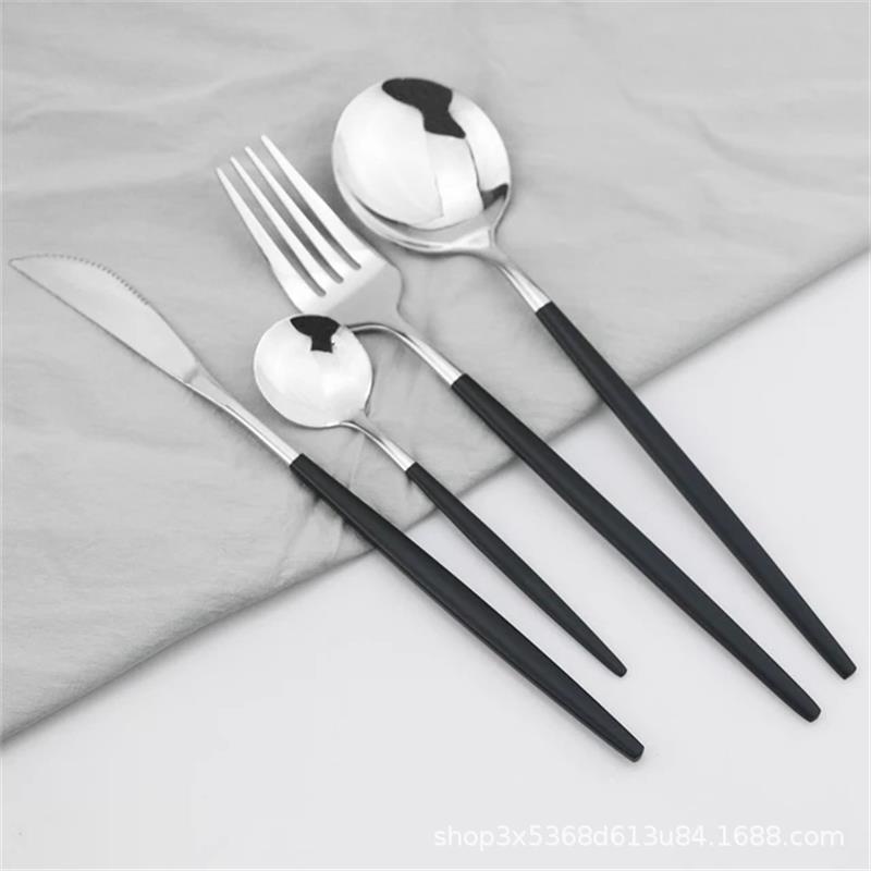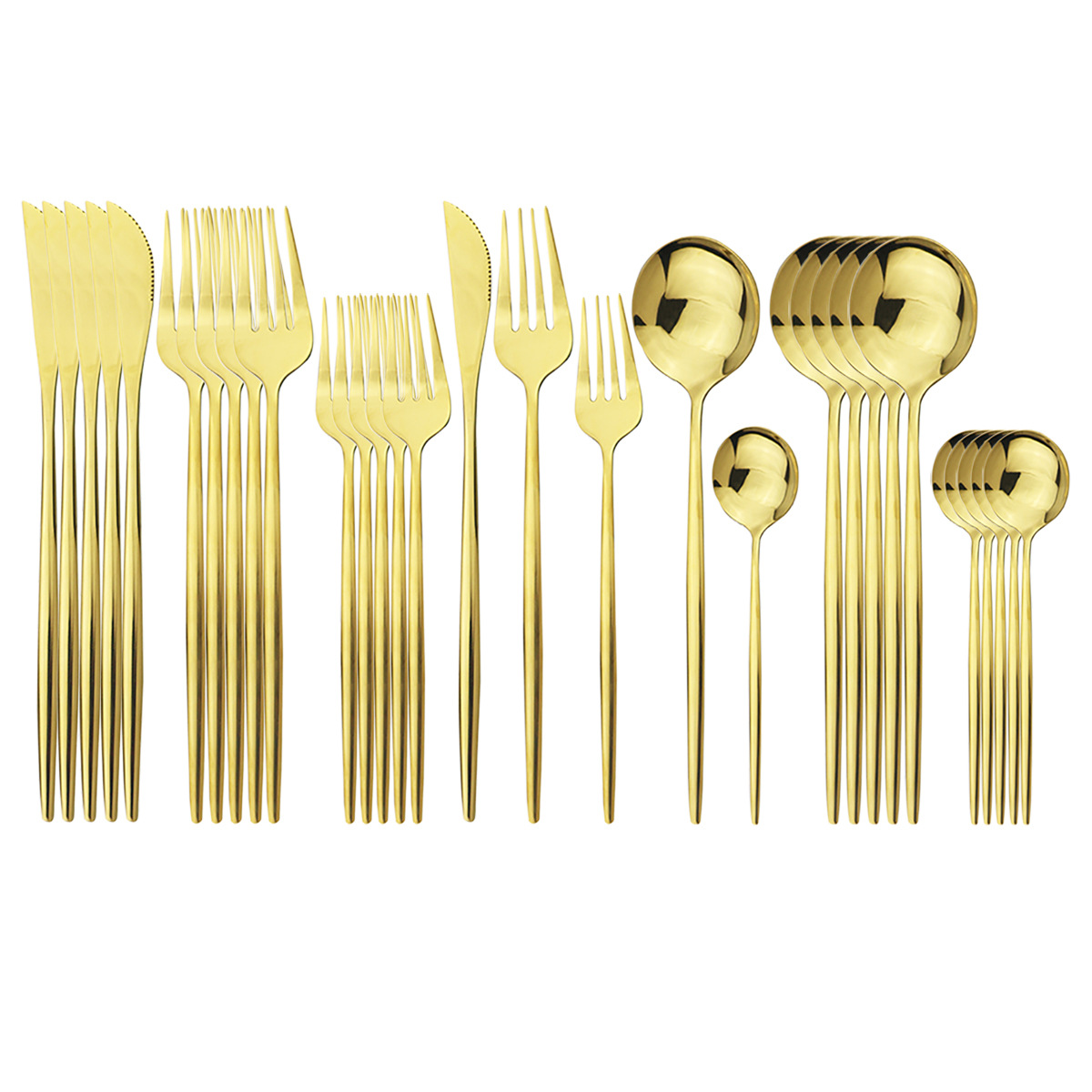 30p不锈钢餐具套装 镜面金色勺子刀叉勺 五件套粉银