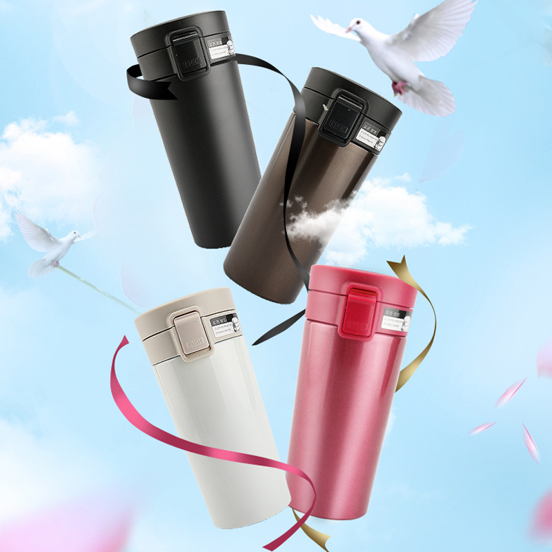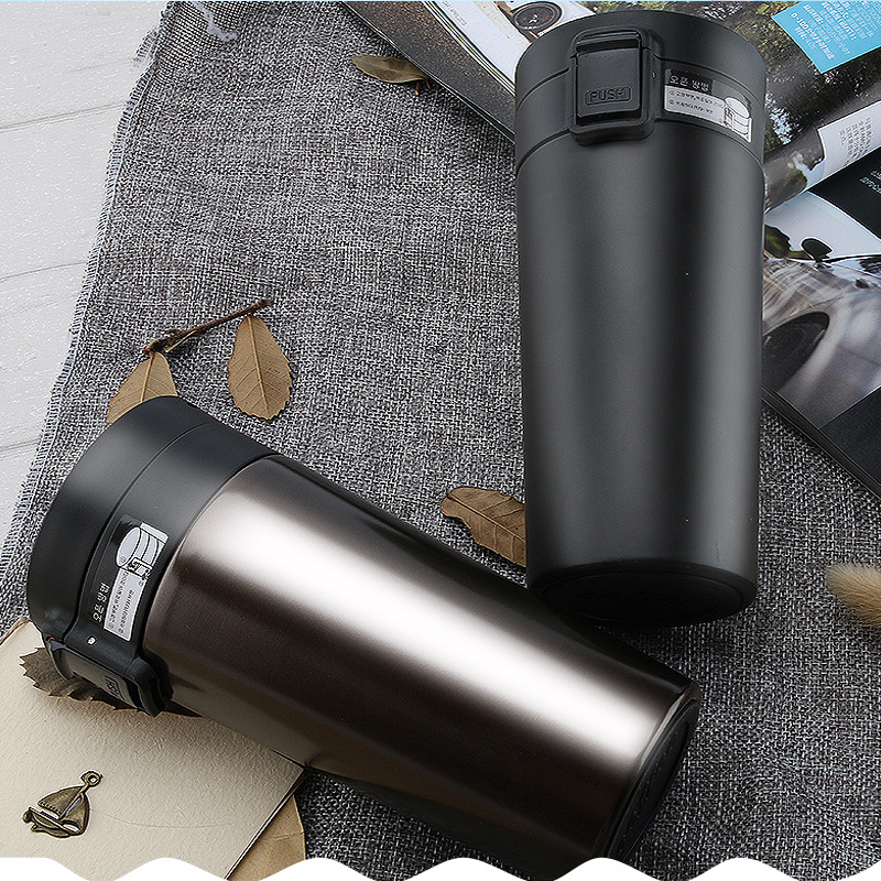 B11商务咖啡杯304不锈钢真空保温杯带滤网弹跳盖水杯时尚随手杯子:B11红色/380ml
