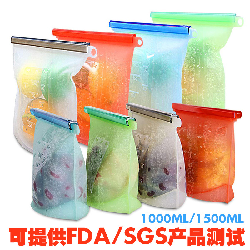 亚马逊跨境爆款硅胶保鲜袋密封食品袋冰箱冷冻食物自封袋重复使用