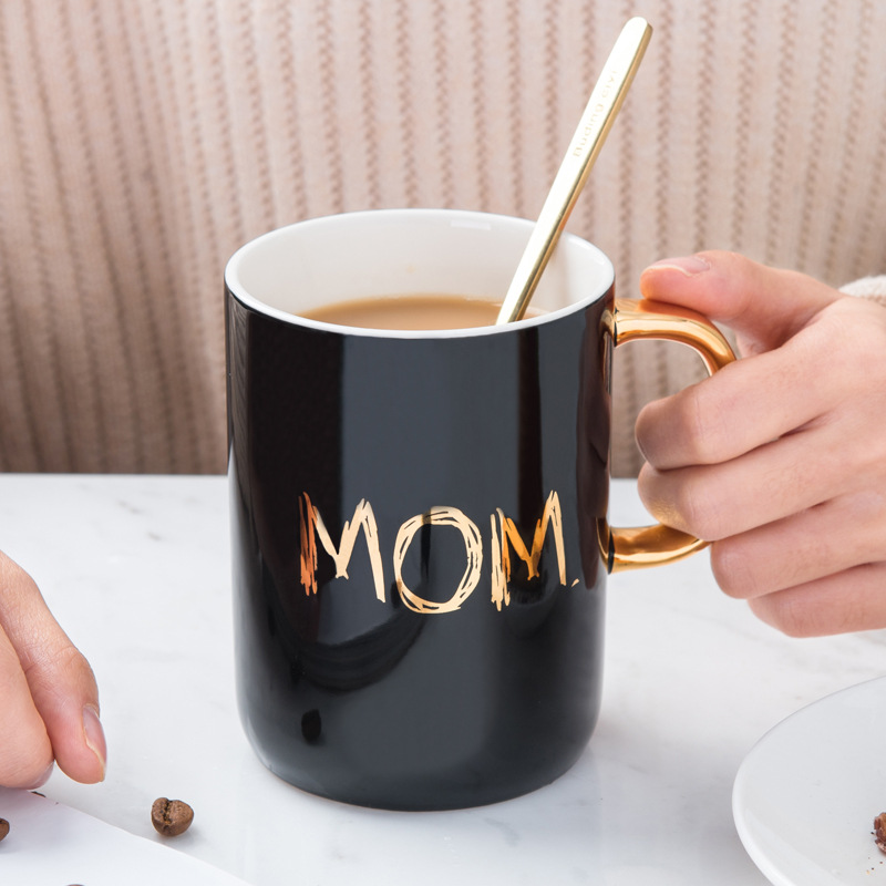 跨境爆款母亲节父亲节礼物陶瓷马克杯简约水杯MOMDAD杯子礼盒装