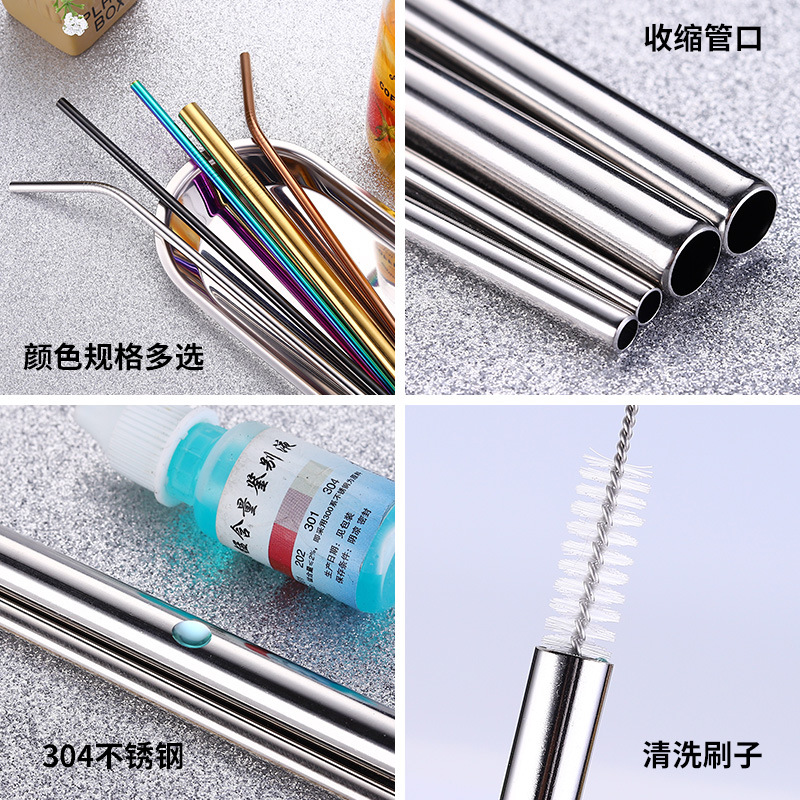 跨境货源规格304不锈钢吸管套装yeti杯镀钛金奶茶创意款爆款