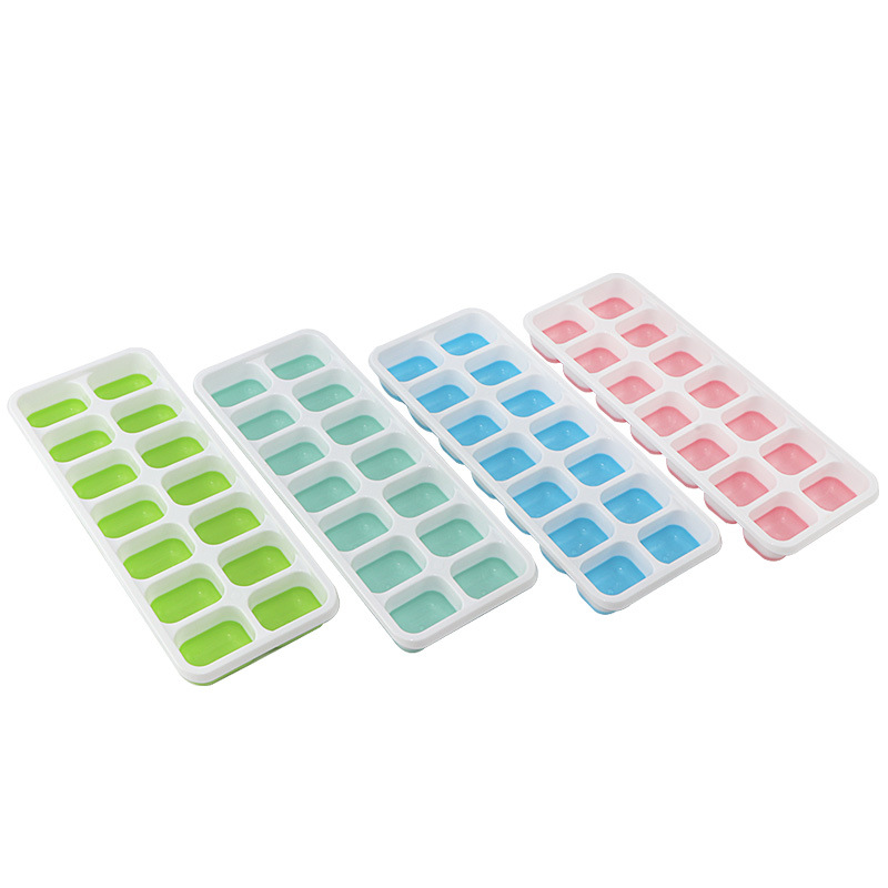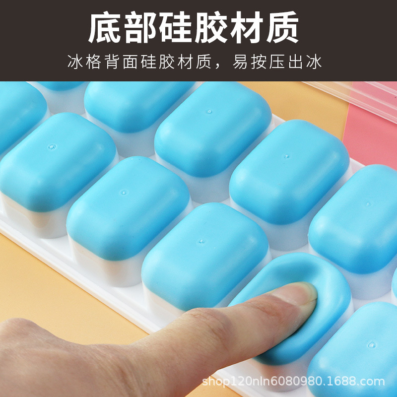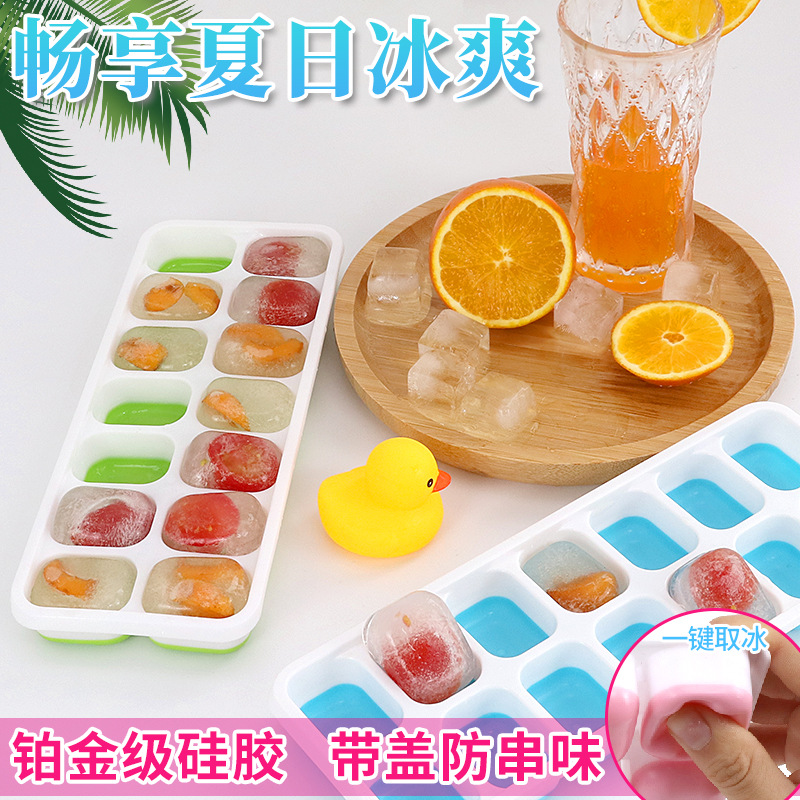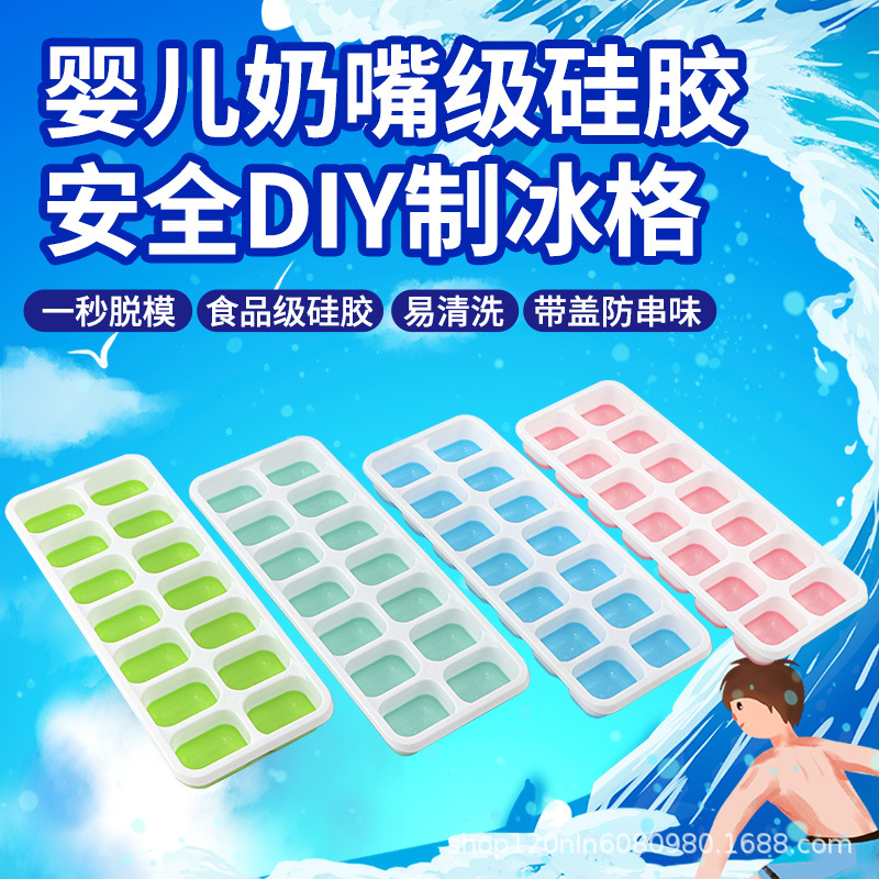 跨境爆款14格硅胶冰格模具 创意DIY冷藏冰块制冰盒带盖宝宝辅食盒