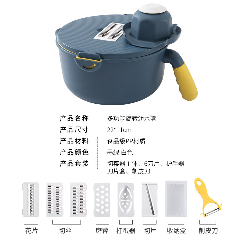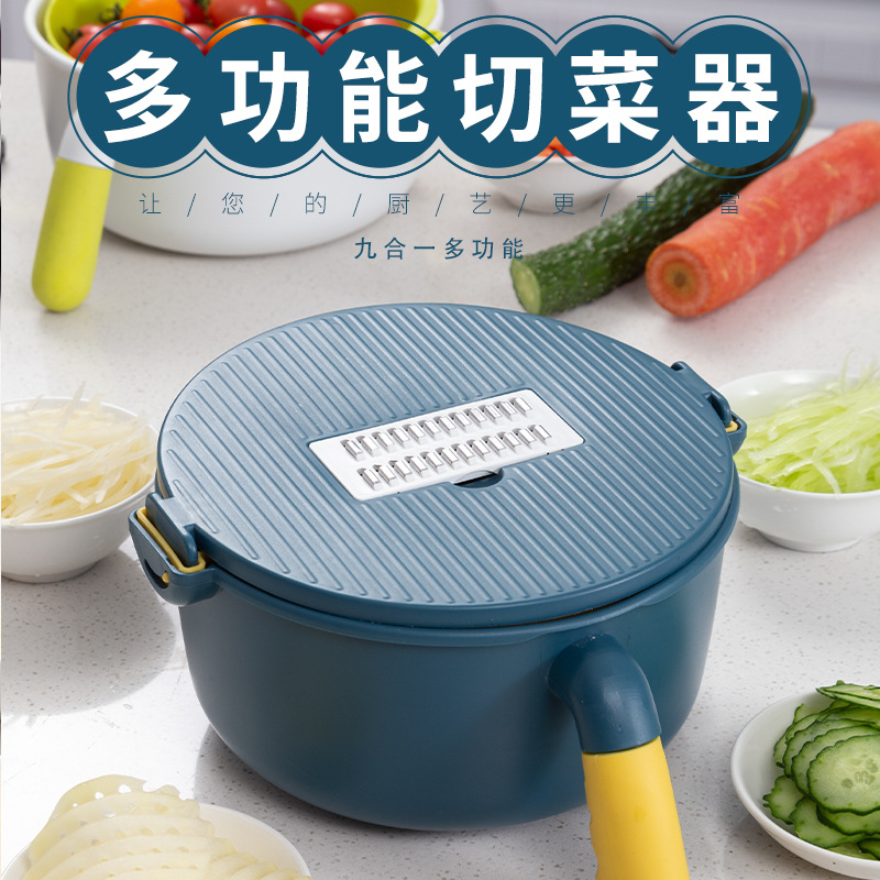 跨境爆款新款带沥水多功能刨丝器切菜器厨房工具圆形洗菜盆擦丝器