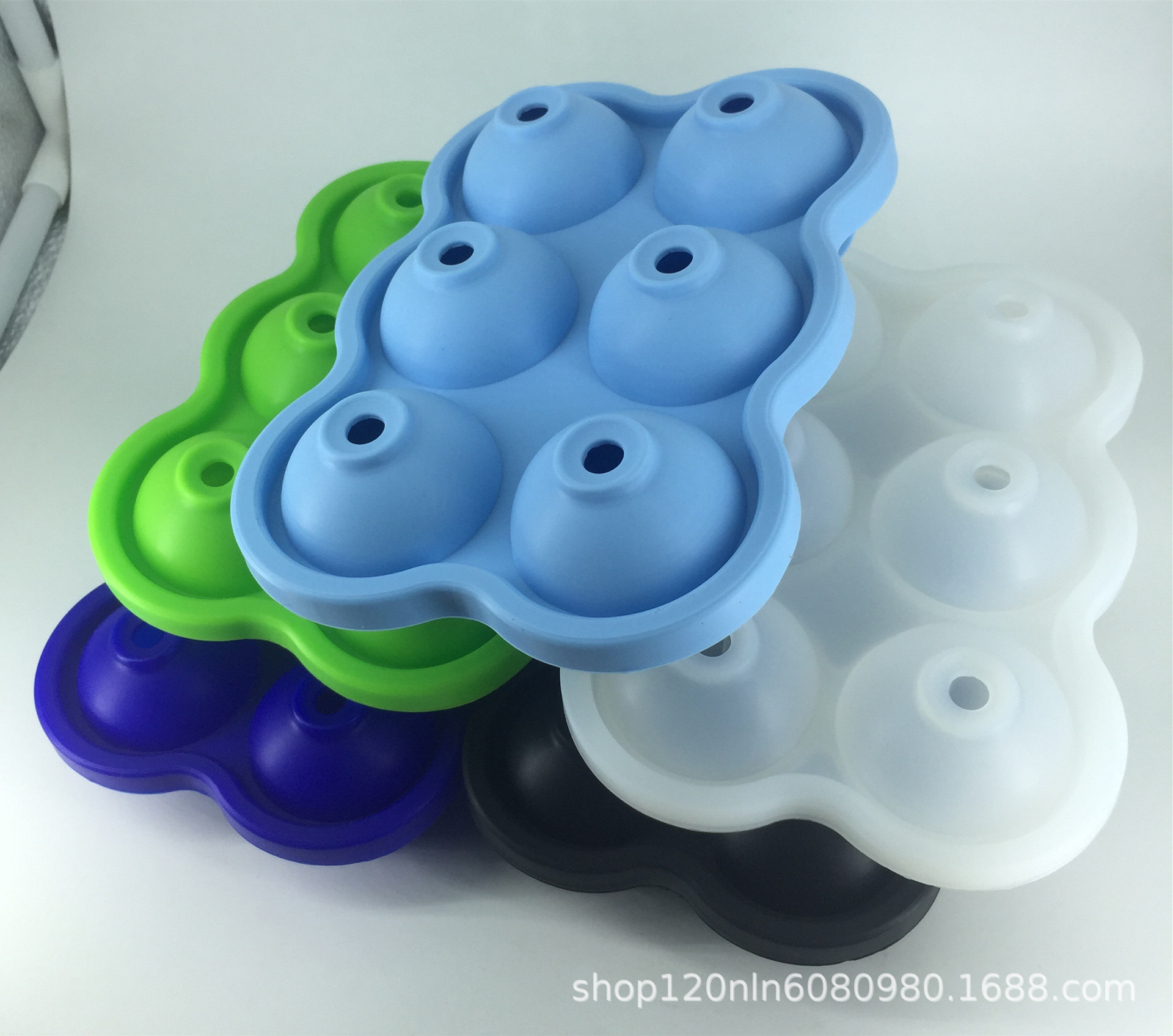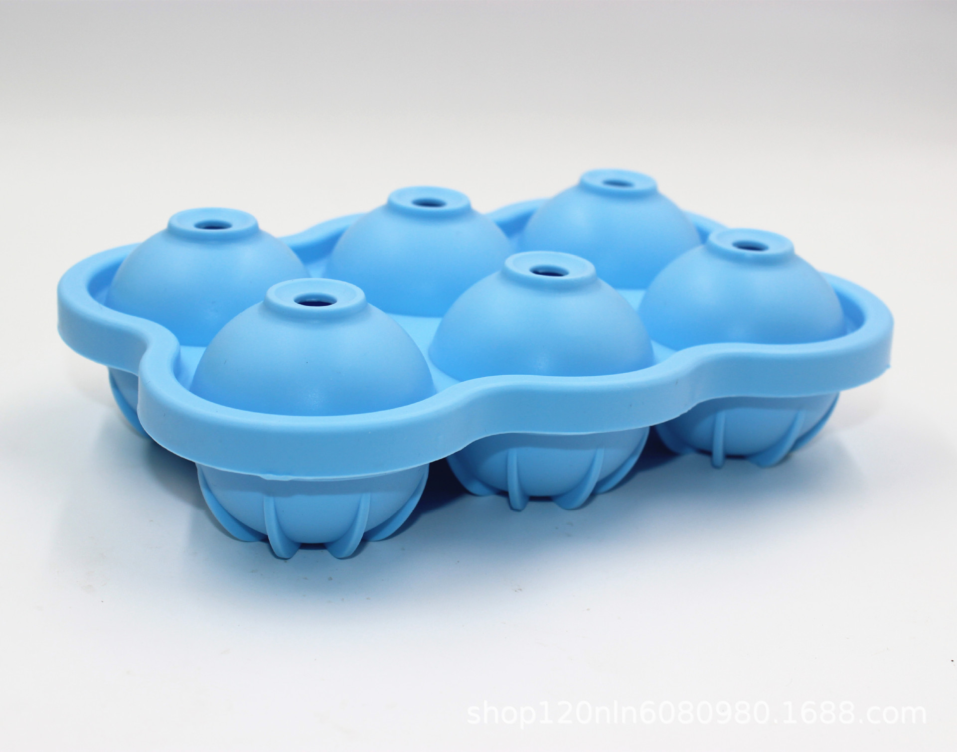 跨境爆款六连冰球模具 创意圆形冻冰块冰格硅胶6孔圆球烘焙制冰盒