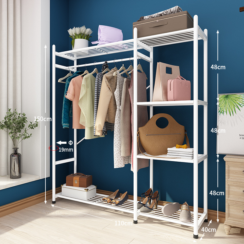 【JH】ชั้นราวตากผ้า ราวตากผ้าพร้อมชั้นวาง ราวแขวนผ้า ชั้นวางเสื้อผ้า ชั้นวางของ ชั้นวางรองเท้า วางของได้หลากหลาย รับน้ำหนักได้ดี ทนทานแข็งแรง