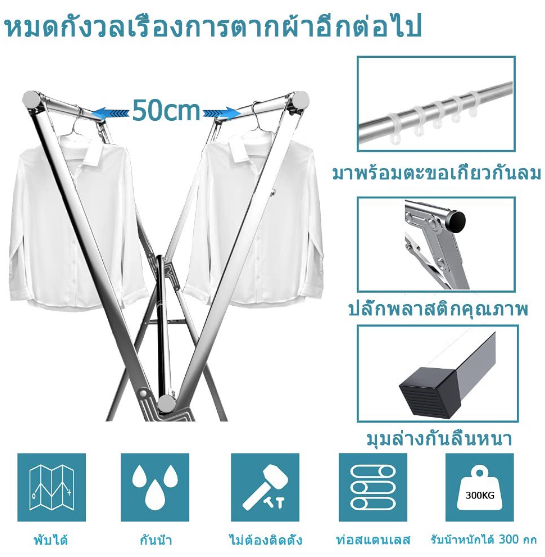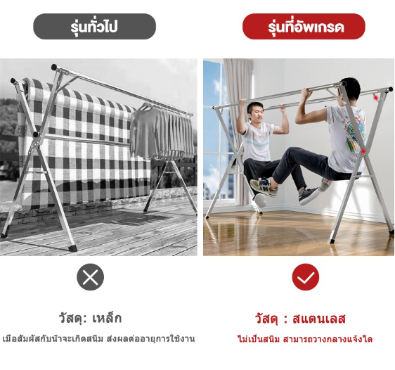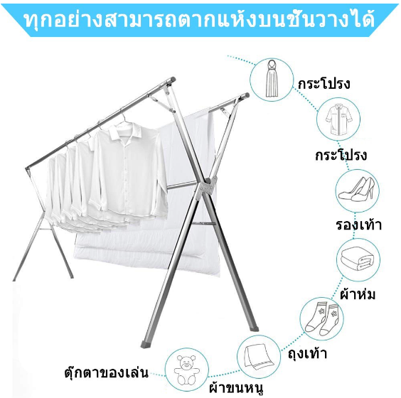 【JH】240cm ราวตากผ้าสแตนเลสรุ่น X Drying Rack พับเก็บง่าย ยืดหดได้ 1.2-2 เมตร ราวตากผ้า ราวตากผ้าพับได้ ราวตากผ้าตัวX