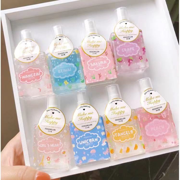 น้ำหอมสาวน้อย Make me happy น้ำหอมวัยใส มี 8 กลิ่น น้ำหอมกลิ่นพีช น้ำหอมกลิ่นนม น้ำหอมกลิ่นผลไม้