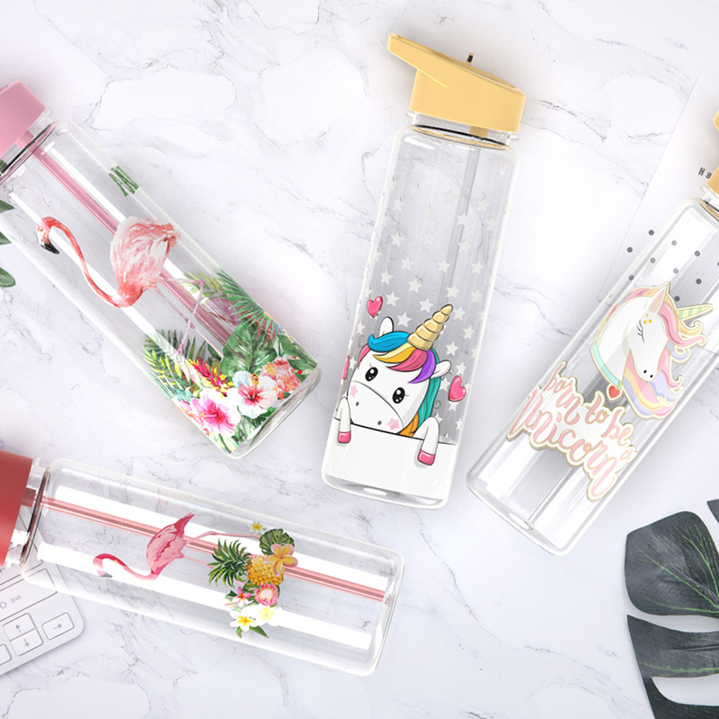 跨境专供塑料火烈鸟水杯元素爆款ins超火水杯吸管运动水杯塑料杯