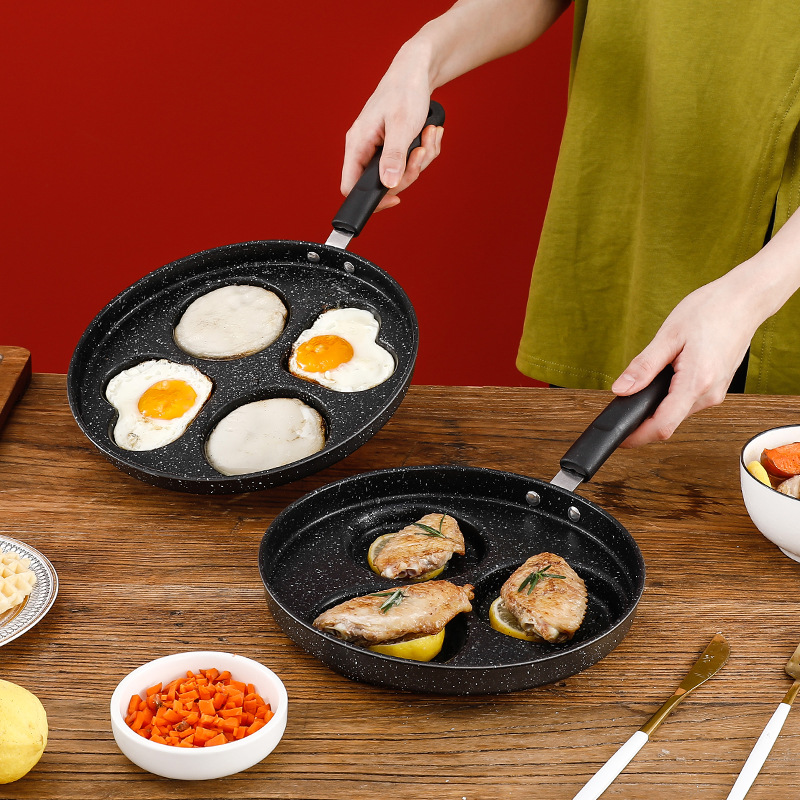 跨境爆款麦饭石不粘锅多功能早餐煎锅锅四孔煎锅家用平底锅煎蛋锅