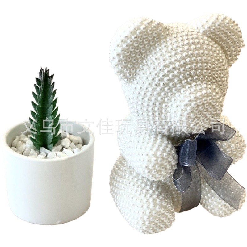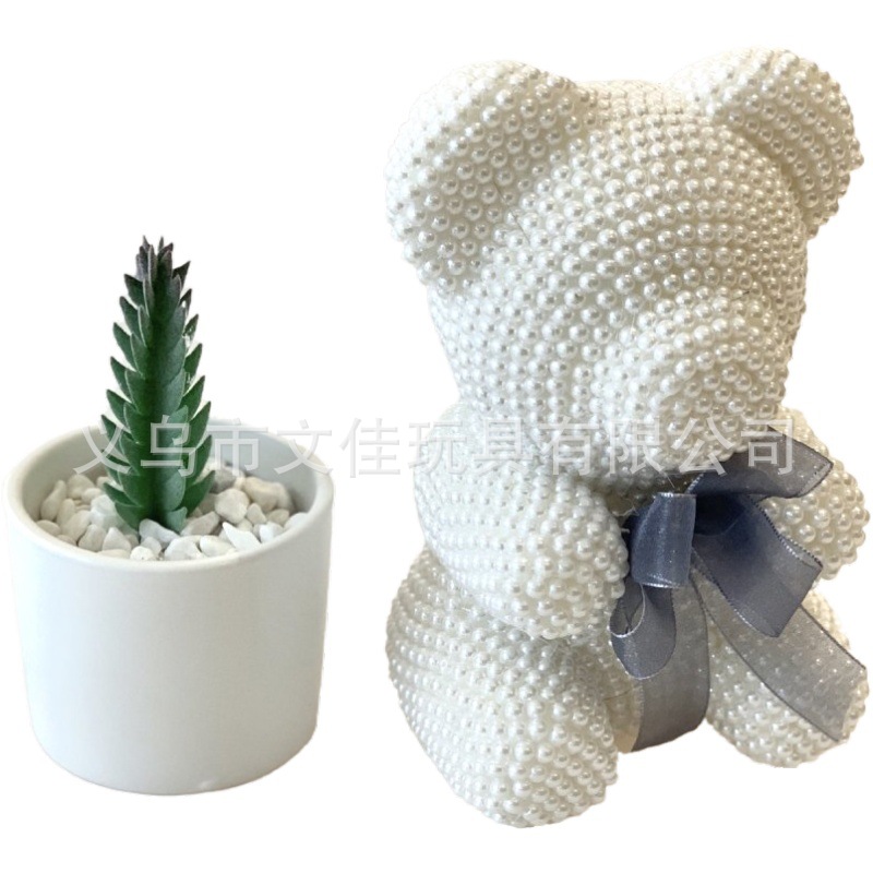 跨境爆款高端生日礼物奥斯丁玫瑰香皂花珍珠小熊情人节礼物玫瑰熊