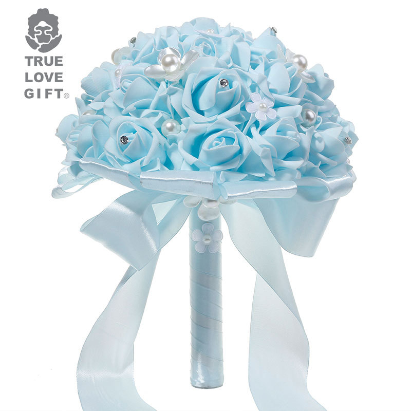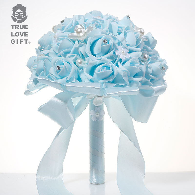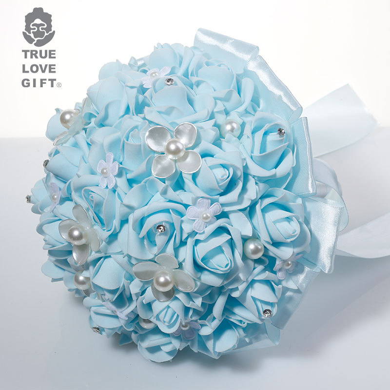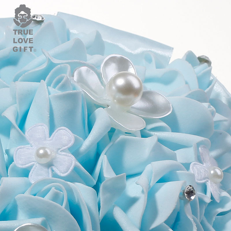 清新蓝花朵珍珠玫瑰手捧花西式婚庆用品跨境爆款货源道具热销精品