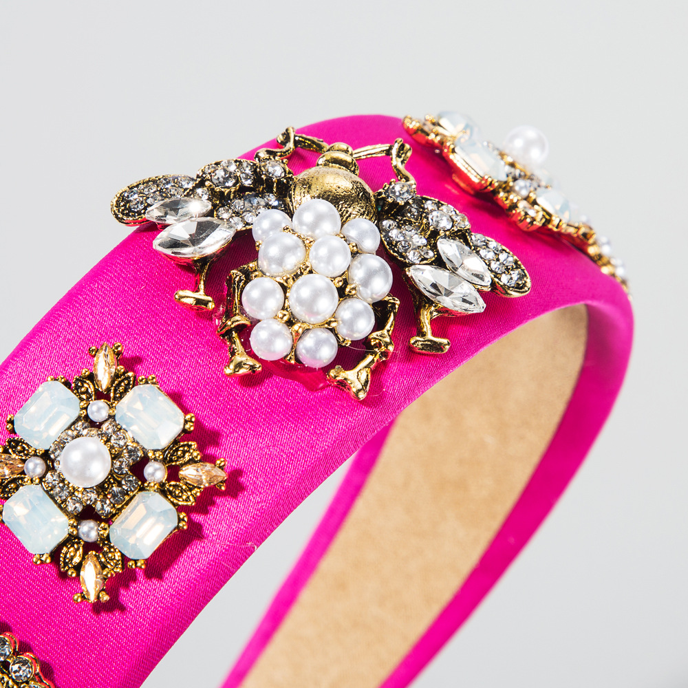 跨境爆款欧美创意巴洛克发箍镶水钻珍珠头箍蜜蜂彩色布料花环头饰