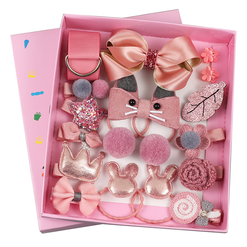 跨境爆款18件套儿童发饰套装宝宝发夹发圈公主头饰发卡礼盒套装