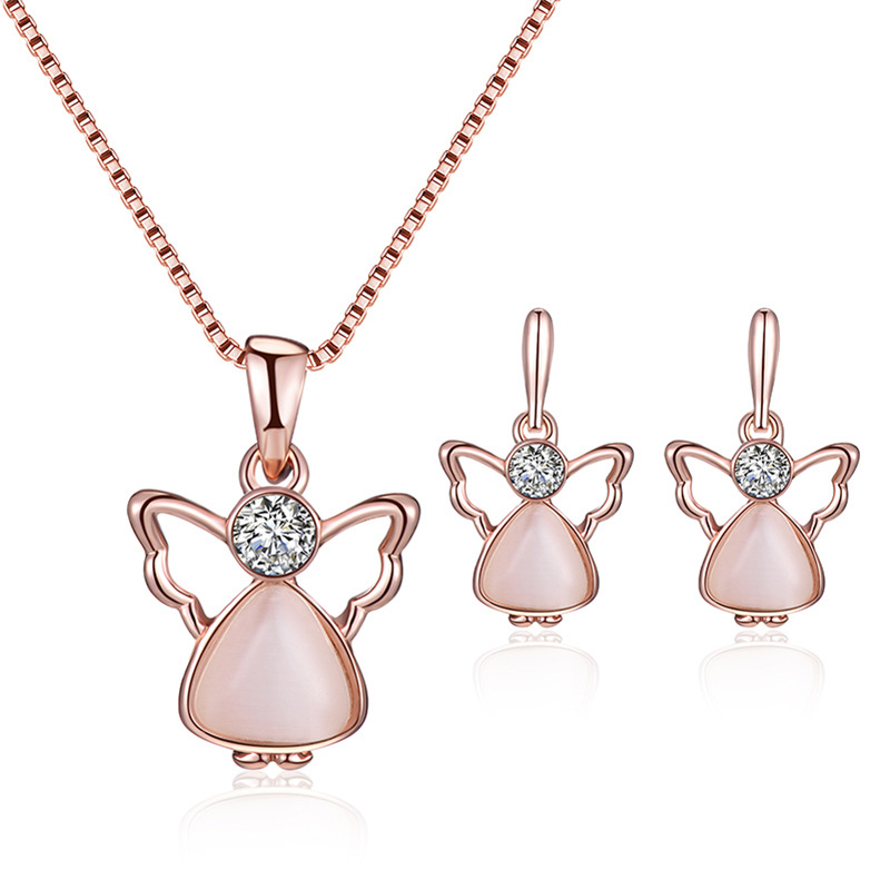 跨境爆款小猫眼饰品套装项链耳环套装新娘首饰套 装欧美套装首饰