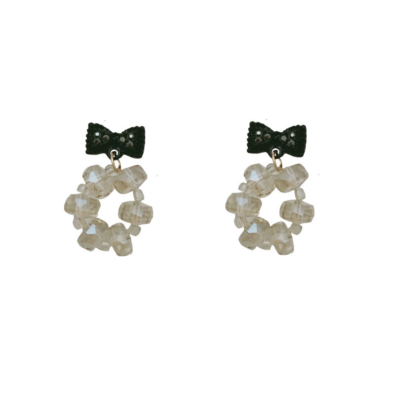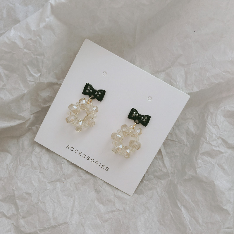 包装清单 跨境爆款S925银针蝴蝶结黑耳环女水晶复古耳钉女冷淡风韩国耳饰