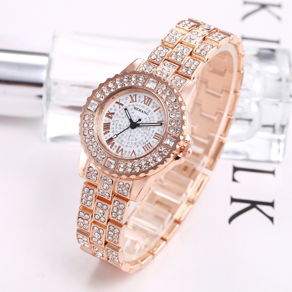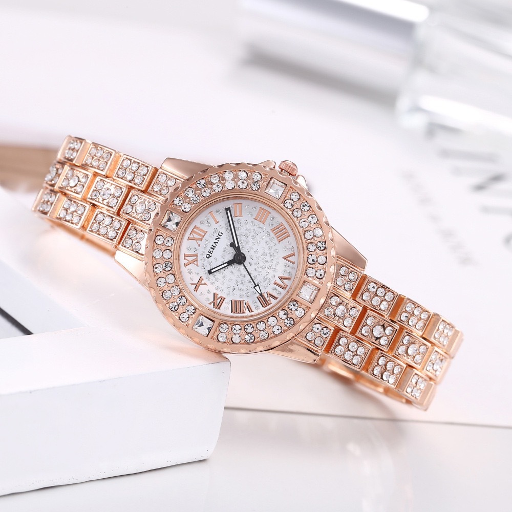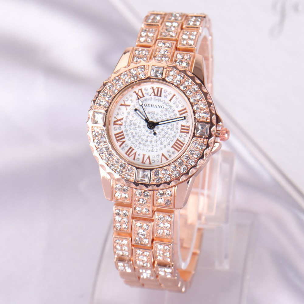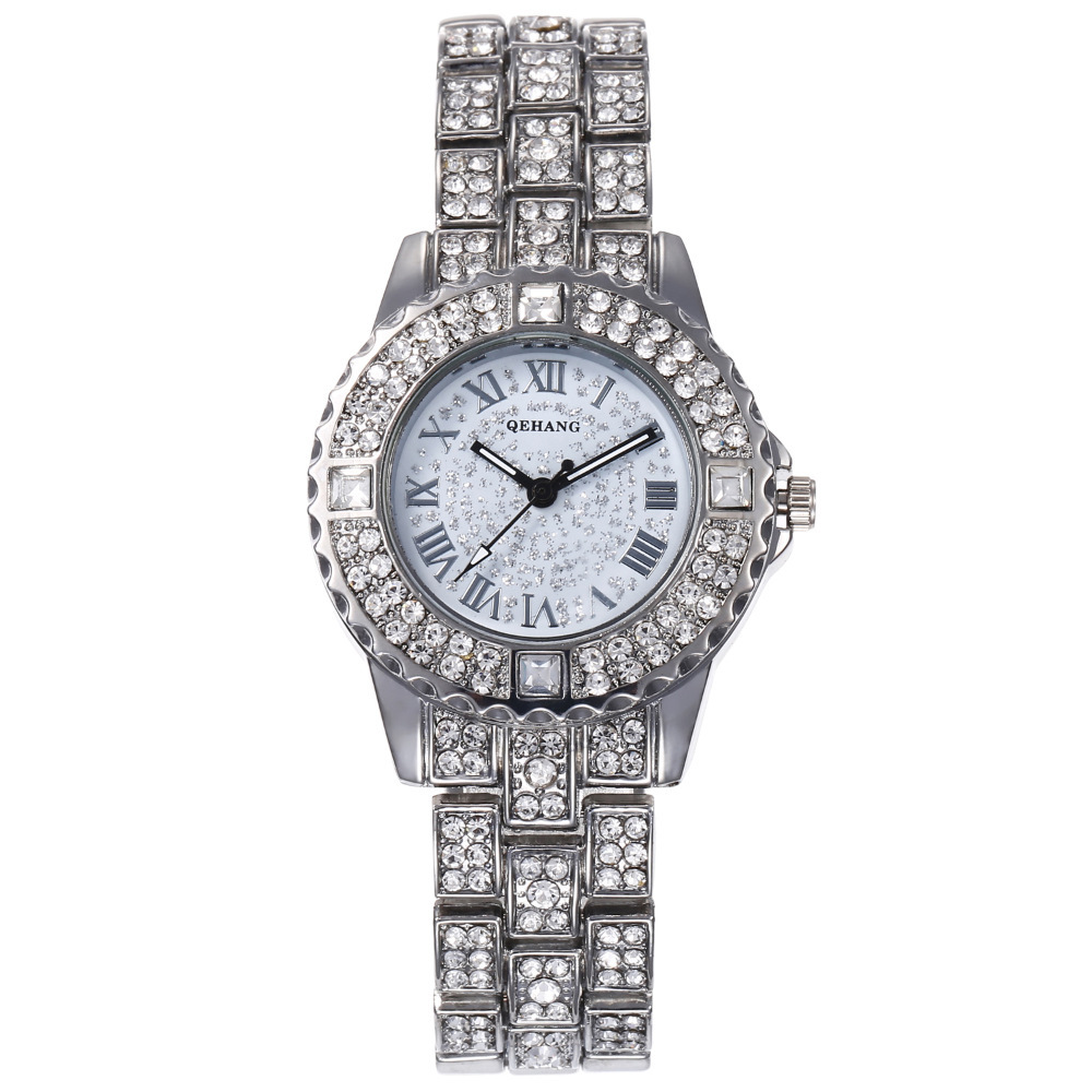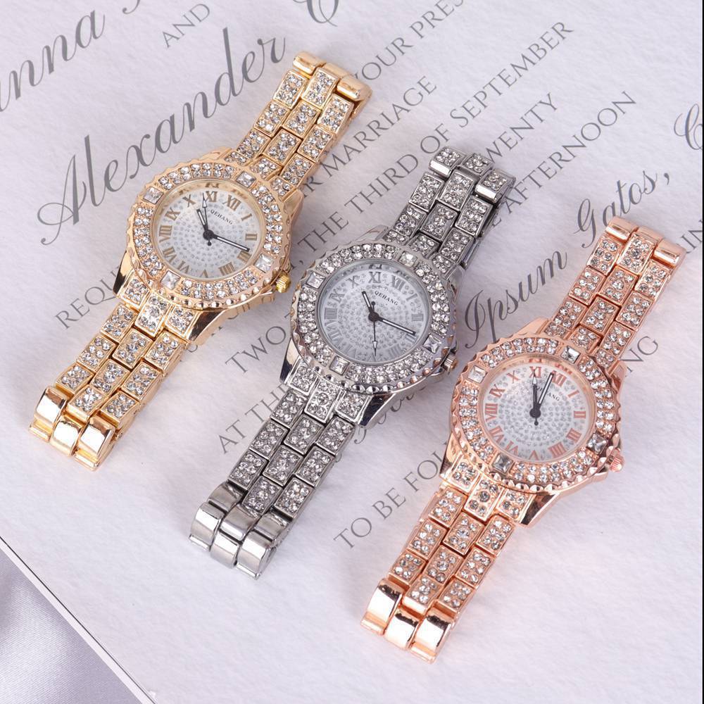 跨境爆款镶钻满天星石英腕表简约时尚女士合金钢带手表厂家直销