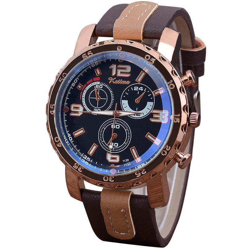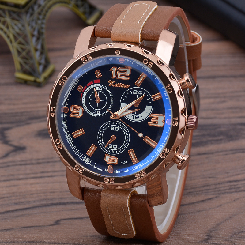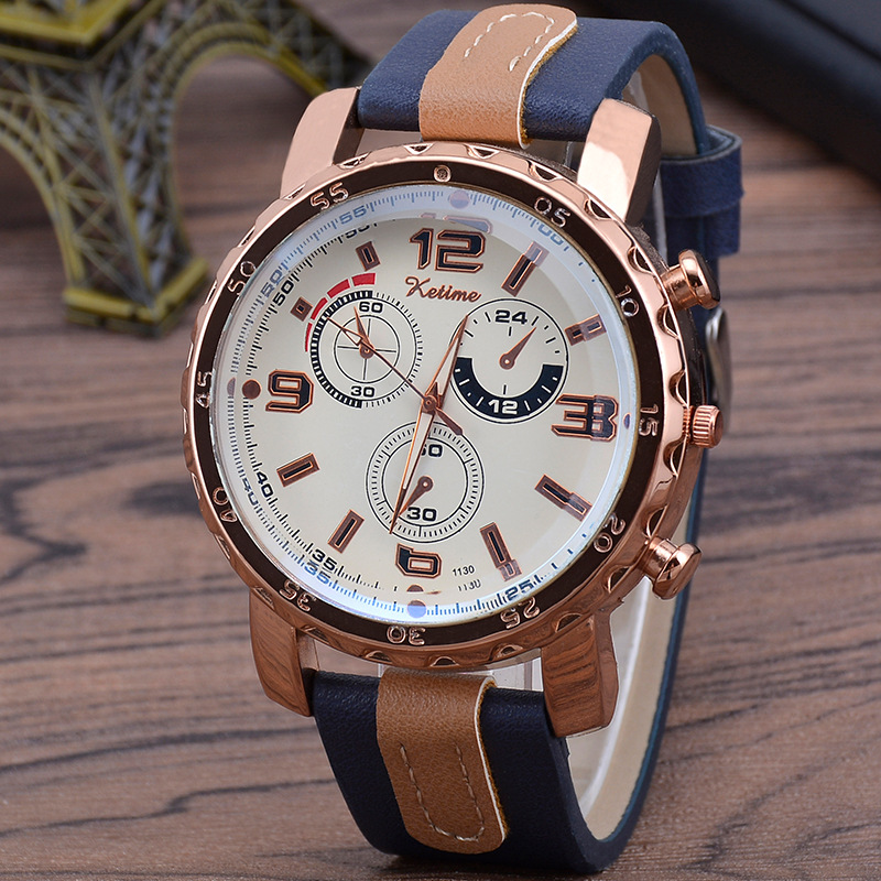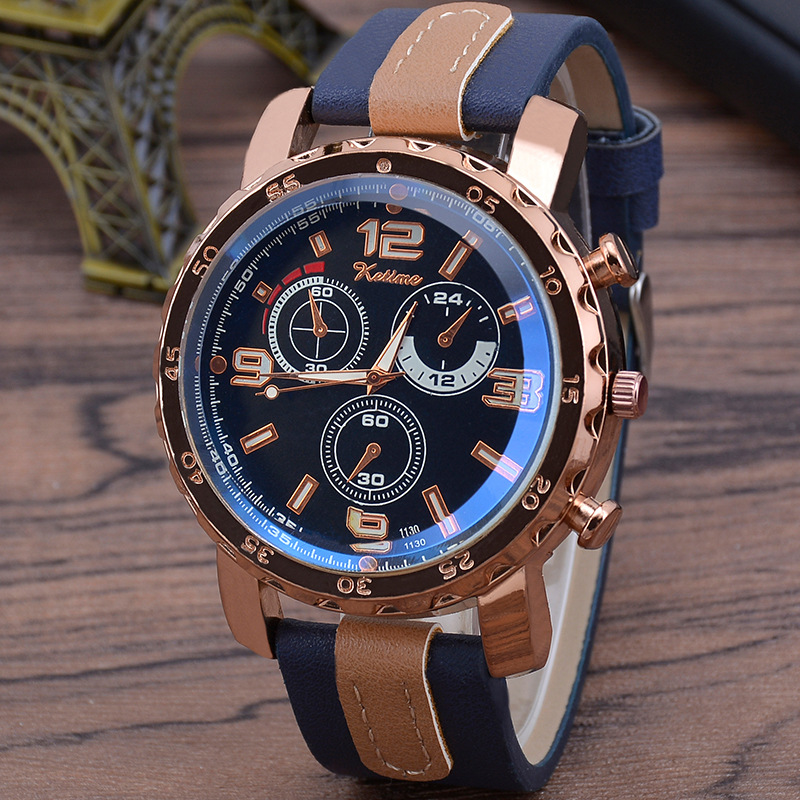 跨境爆款时尚炫彩蓝光男士手表 男韩版运动三眼皮带石英手表批发