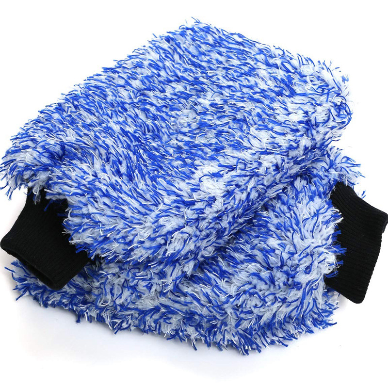 Hot selling car washing tools Microfiber double-sided large color long-wool coral velvet car washing gloves