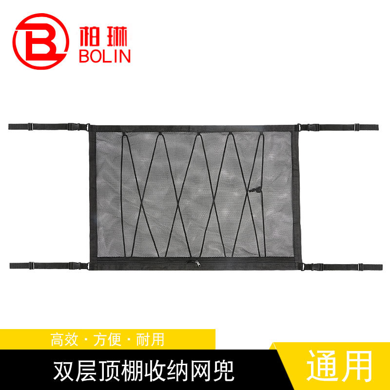 汽车顶棚收纳网袋抽绳款车顶置物袋双层拉链车内储物网兜