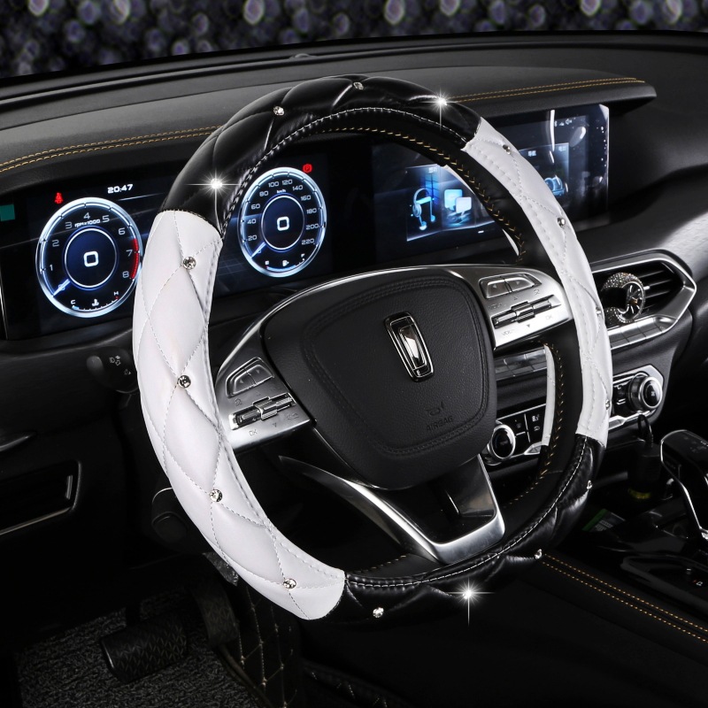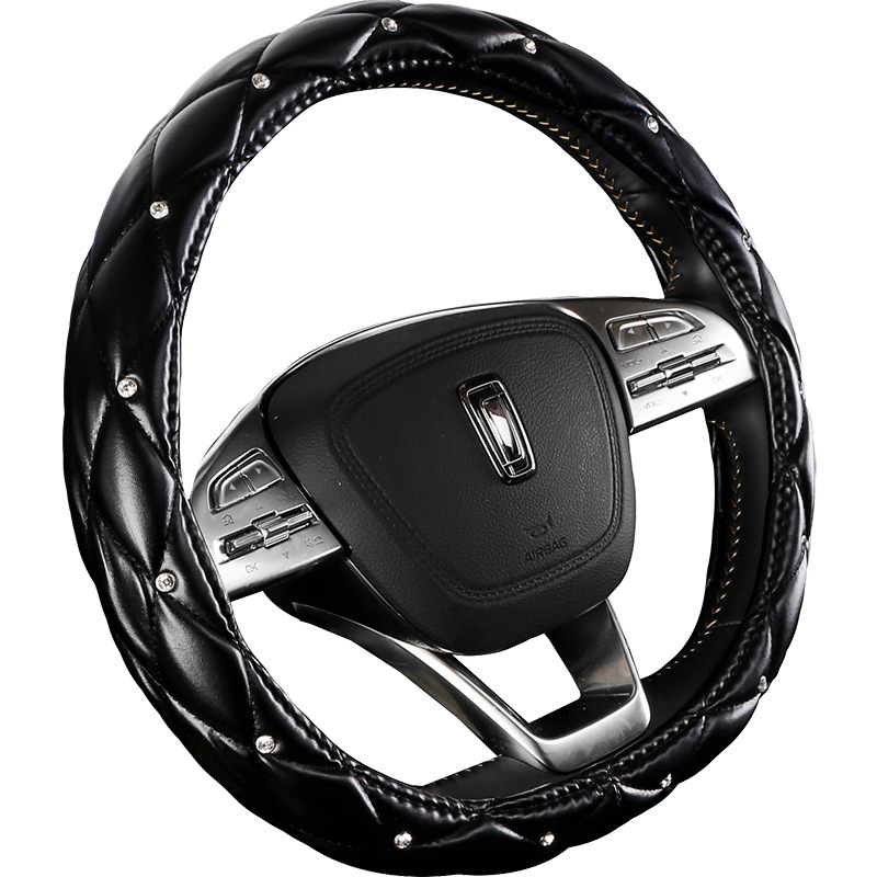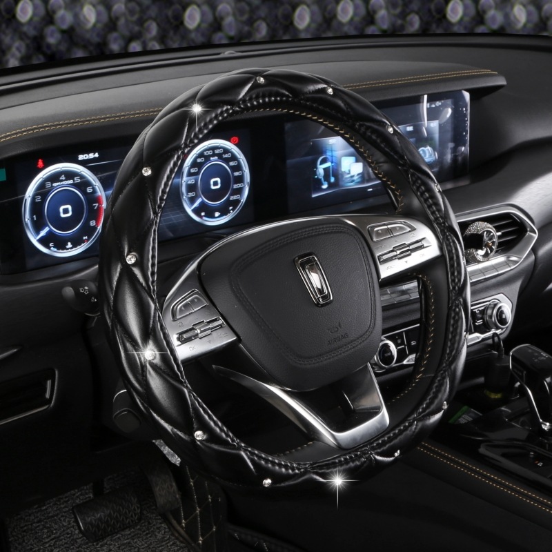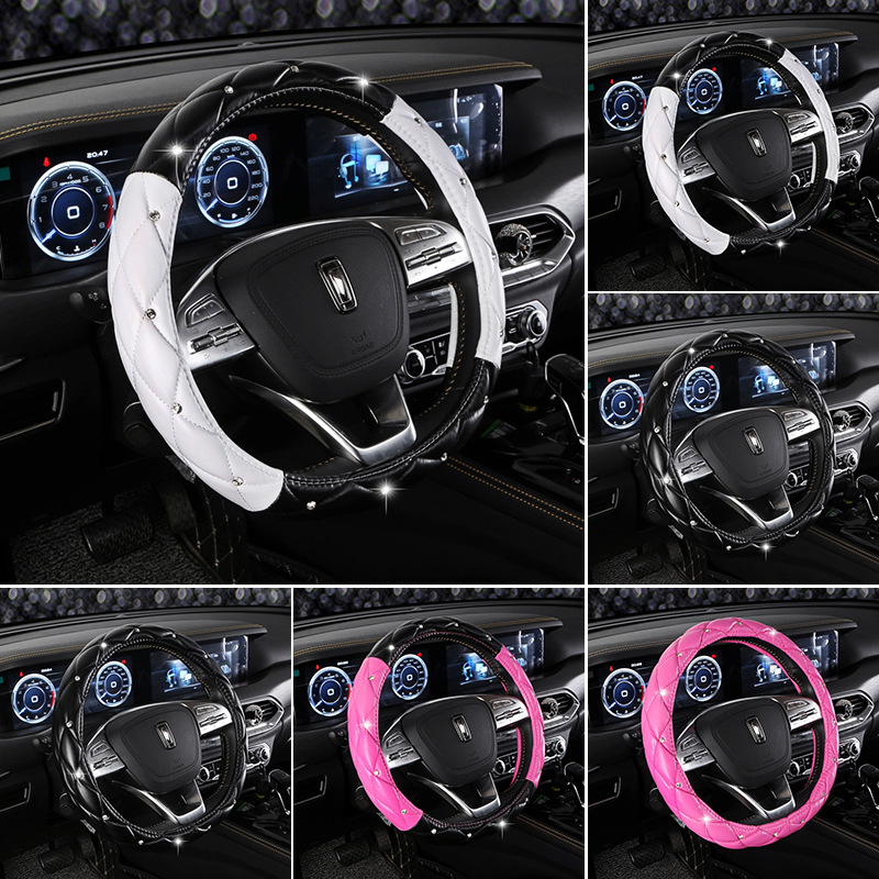 跨境专供亚马逊爆款汽车用品镶钻方向盘套汽车把套皮女性四季通用