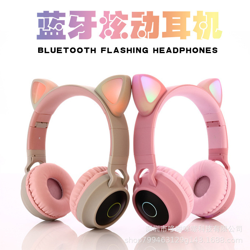 猫耳朵蓝牙耳机头戴式 电脑电竞耳麦无线发光耳机 新款