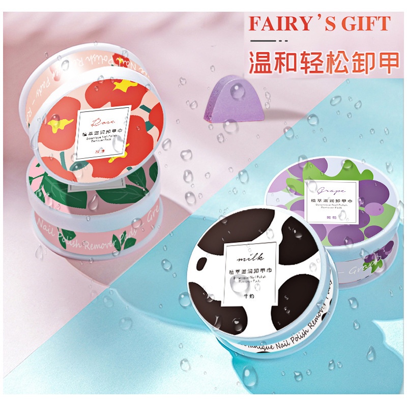 卸甲油板 卸甲油 有4种香味可供选择。 对指甲温和 健康的指甲 4 种香味 绿茶、玫瑰、葡萄、牛奶 包装尺寸 48 张