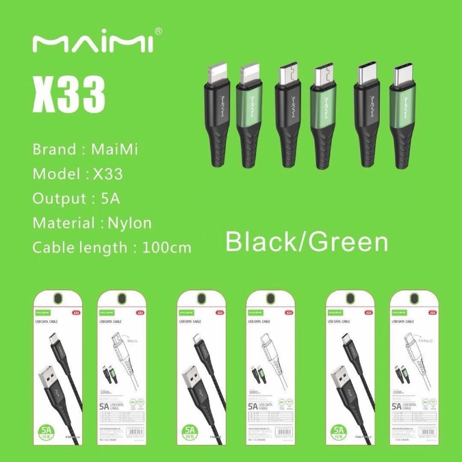 【MMY】Maimi X33 สายชาร์จไว จ่ายไฟสูงสุด 5A MAX สำหรับ iOS / Micro USB/ Type-C ใช้ถ่ายโอนข้อมูลได้ มี สีดำ เขียว
