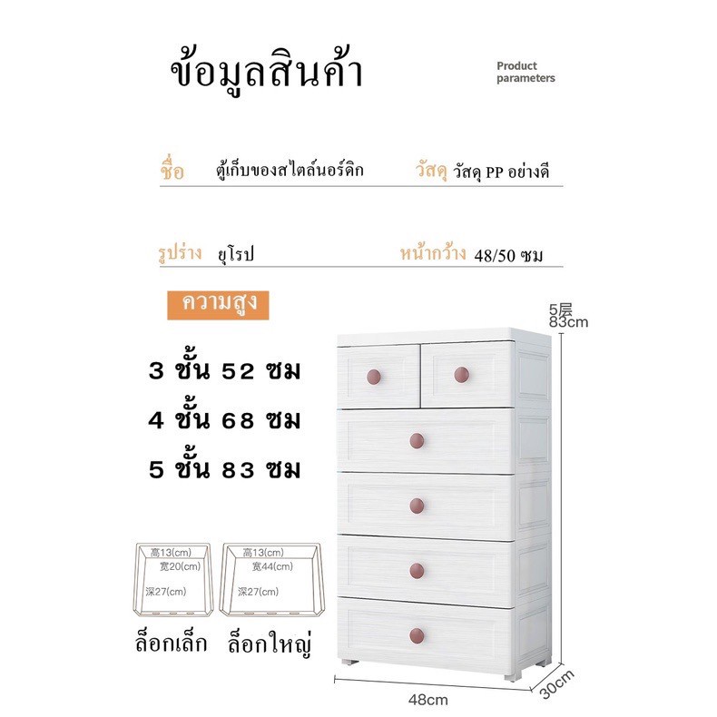 H205 ตู้เสื้อผ้าตู้เก็บของสไตล์ยุโรป หน้ากว้าง 48 ซม. เรียบหรู พร้อมส่ง