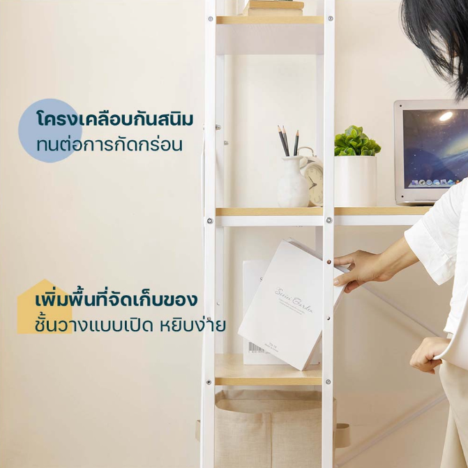 ——书桌和书架是多用途的,不仅仅是一张桌子,而是一个书架。
