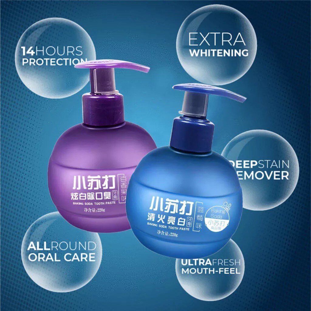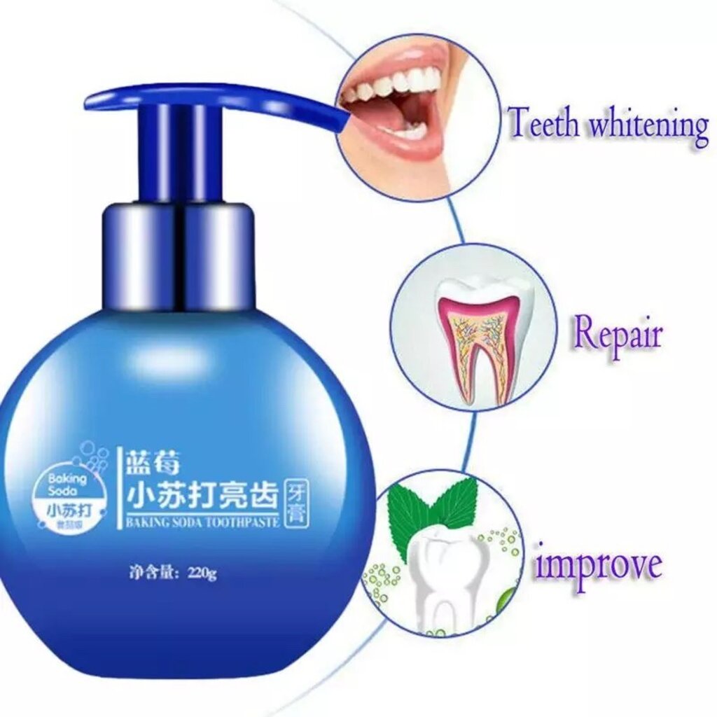牙膏,洁白的牙齿,2种香味 紫色、蓝色百香果、蓝莓 数量 220 克 -不用花钱千百次漂白牙齿。-你的牙齿是黄色的污渍,不是漂亮的白。一定是这个。 - 由 100% 草药提取物制成 特征: 超强天然去污剂: 强效小苏打渗透到牙釉质的深层裂缝中,去除顽固的茶、咖啡或尼古丁污渍。 自然洁白的牙齿: 有效去除污垢和食物颗粒,同时中和牙菌斑。 无毒、安全、无化学物质: 不含会伤害蛀牙的氟化物三氯生过氧化物。