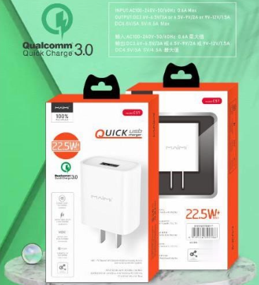 电流充电头5A和功率22。5Wmax提供了更快的完全充电能力