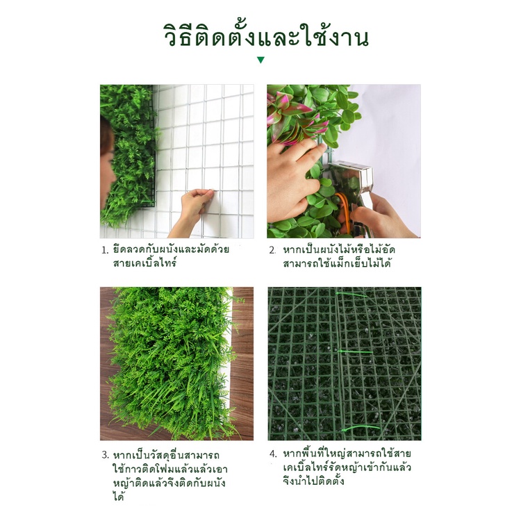 หญ้าตีนเป็ด หญ้ามิลาน ใบเฟิรน์ ยูคา กำแพงสวนรั้วต้นไม้ปลอม หญ้าติดผนัง ติดระแนง กันแดดไม่กันลมแต่งร้านแต่งคาเฟ