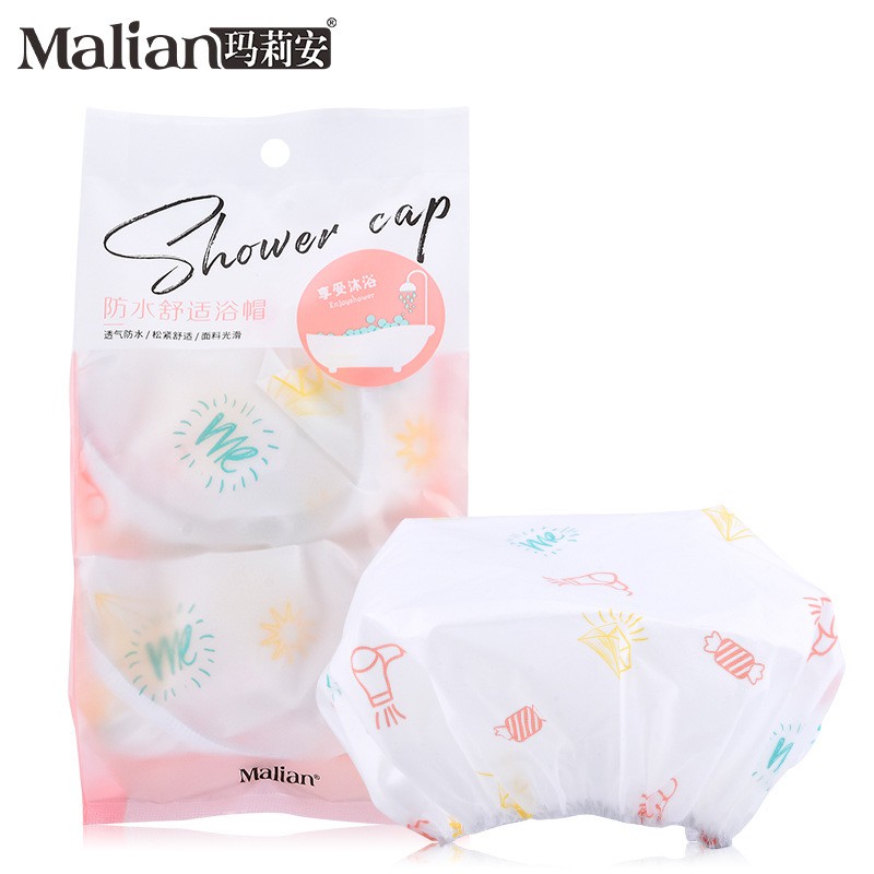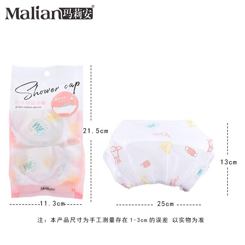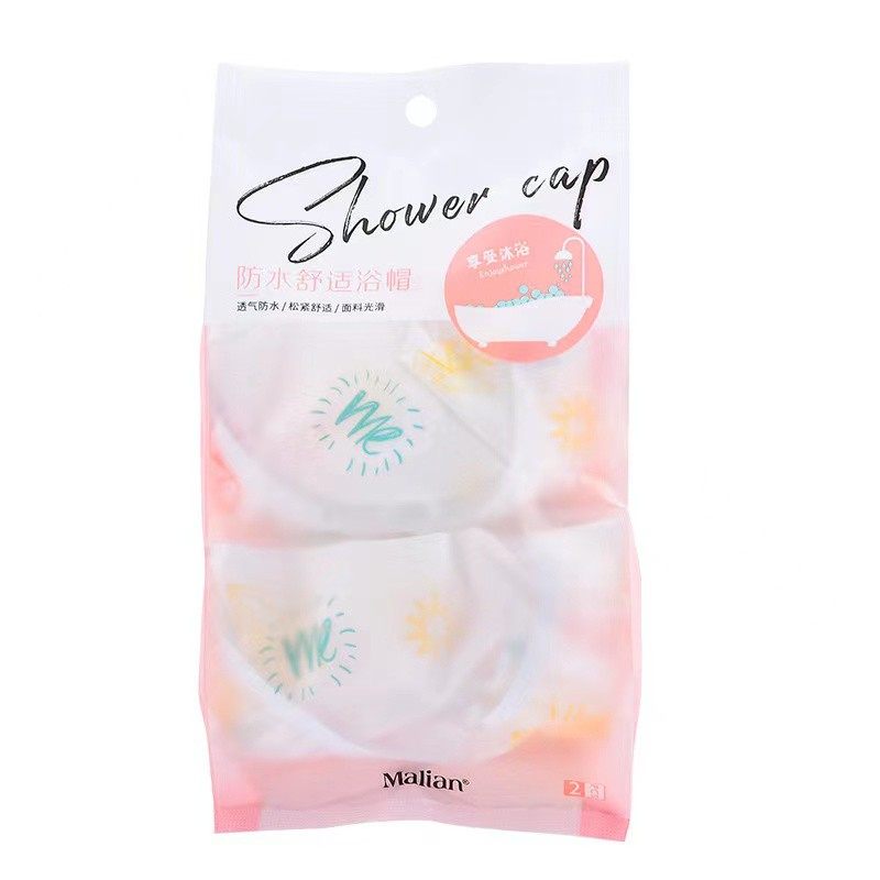 浴帽,2 件装 发帽,头发收纳,可爱图案 重量轻、防水、柔韧性好 如何使用 扎起头发,戴上帽子来收头发,防水、轻便、舒适。