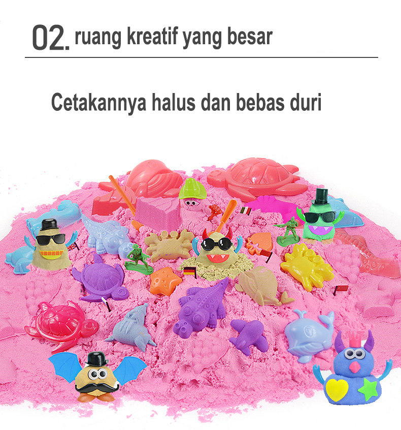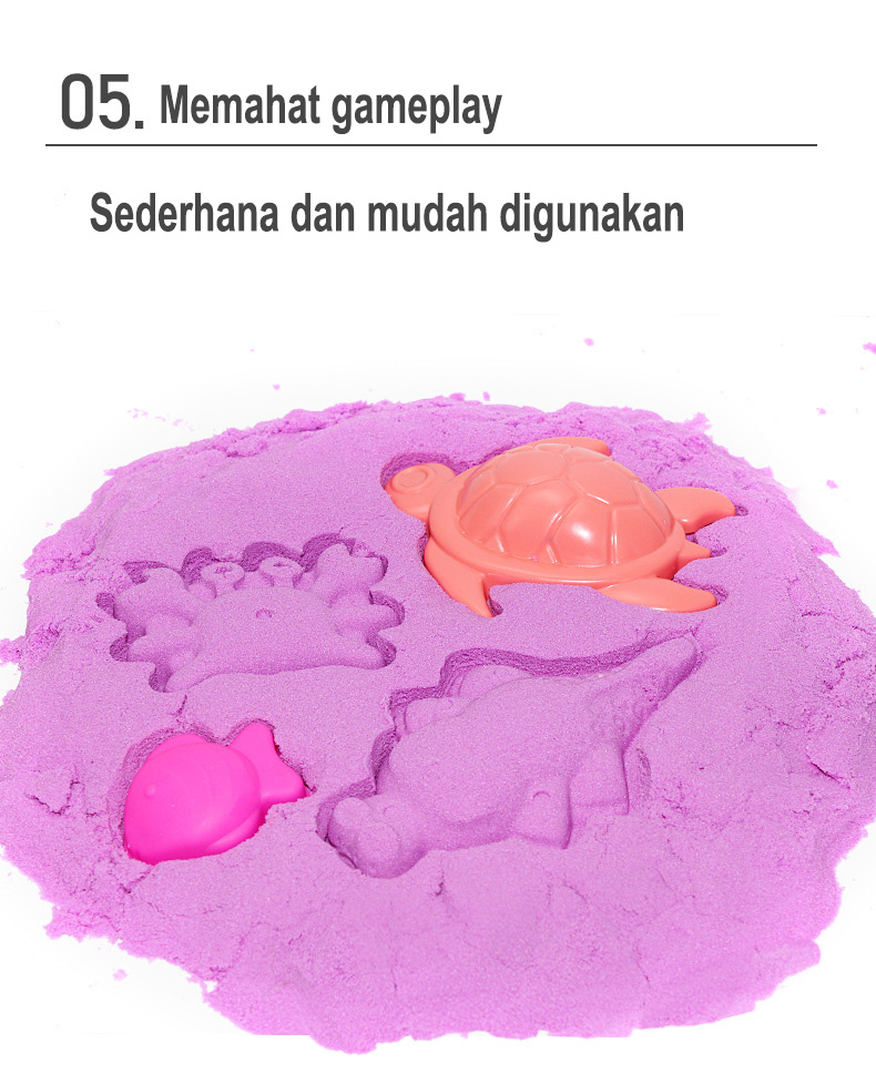 有5种沙子颜色可供选择:1。粉色。2。蓝色3。绿色4。紫色5.黄色有5种尺寸可供选择:1.动物2.海鲜3.城堡4.水果